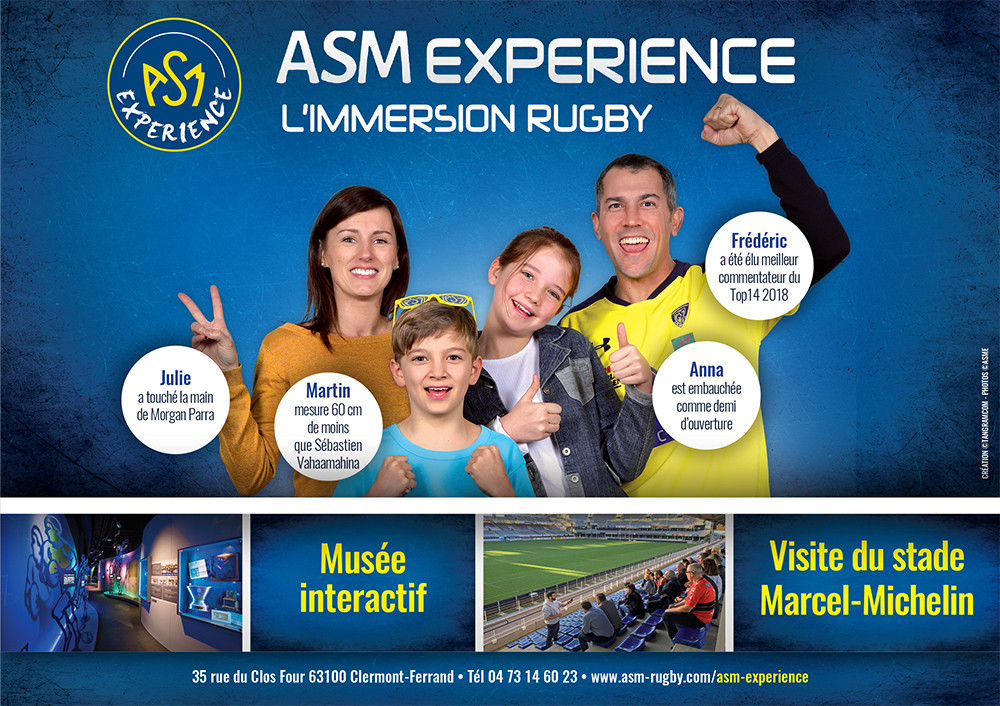 Cette saison, votre abonnement vous donne un accès illimité à notre musée interactif ASM Experience. N’hésitez pas à venir plus tôt au stade afin de profiter de cet avantage. Découvrez les coulisses de l’ASM ainsi que l’exposition temporaire consacrée au titre de Challenge Cup remporté en mai dernier. Demain, ASM Experience ouvrira ses portes de 10 heures au coup d’envoi, venez nombreux.