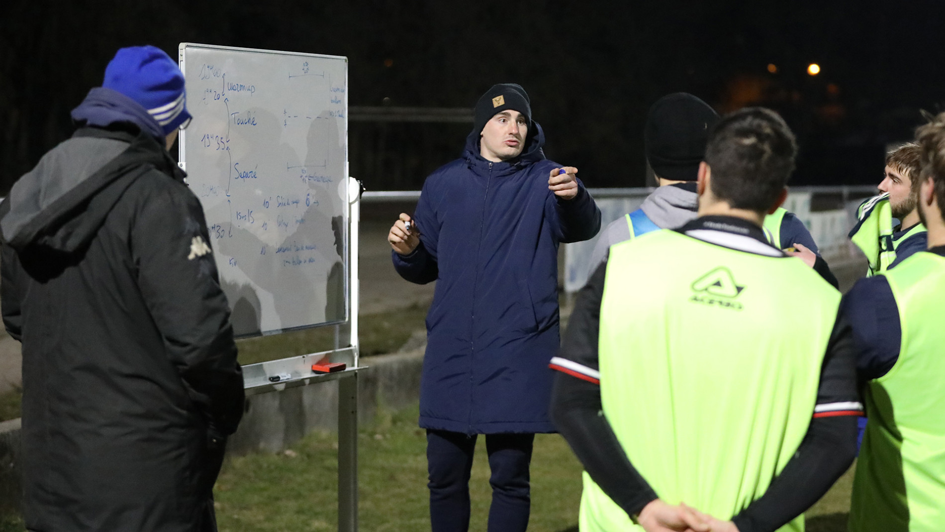 Sur le terrain partiellement éclairé du RCR, où la bise s’est encore renforcée, Lucas a enfoncé le bonnet sur ses oreilles, comme son père. Pendant que la séance a débuté et que « le touché » sert d’échauffement après quelques exercices de gainage, les deux hommes discutent, rigolent, partagent une vraie complicité… pourtant, les premiers temps n’ont pas été si simples. « Cela a été compliqué au début parce que nous avons tous les deux du caractère et nous n’étions pas toujours d’accord », reconnait Stéphane. Avec le temps, chacun a mis de l’eau dans son vin et la relation s’est apaisée. « Aujourd’hui, c’est facile de travailler ensemble et Lucas nous apporte beaucoup. Il permet cette transition entre le rugby amateur qui repose beaucoup sur l’affectif et le rugby professionnel qui demande beaucoup d’exigence. Le Rugby Fédérale est à la croisée des chemins, on puise des deux côtés. On doit lier, l’affectif, la bringue même mais aussi les exigences. Il intervient pour tempérer nos demandes d’exigence, cela lui apporte également un surplus au niveau de l’état d’esprit ». Il est 19h30, Lucas rassemble ses avants devant le tableau pour expliquer les consignes. Un discours net et précis, un claquement de mains et l’atelier se met en place. « On valide » « stop » « ok » le troisième ligne vit la séance à 100%, repositionne ses hommes, rythmant les touches au coup de sifflet. Subitement, il arrête tout, réunit tout le monde et met un coup de klaxon ! « N’allez pas me dire que vous connaissez pas les touches, on est en mars ! Ça je ne peux pas l’accepter ! » Le ton redescend aussi vite, les explications reprennent pendant que son père surveille le chrono. « 9 minutes 33, Lulu on enquille sur la deuxième partie ! » Lulu rogne tout de même un peu de temps pour terminer proprement un ballon porté « Quand tout le monde est connecté ça marche ! » lance-t-il avant de passer la main à son père qui dirige la séance collective en opposition sur la dernière demi-heure.