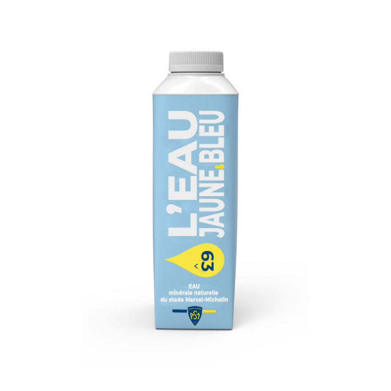 Au cœur du pays des Volcans, les sources naturelles sont nombreuses et célèbres dans le monde entier. Après plusieurs mois de recherches géologiques et de développement « l’EAU des Jaune & Bleu » issue exclusivement de la pluie et du système d’arrosage de la pelouse du stade Marcel-Michelin filtrée naturellement par plusieurs couches géologiques volcaniques a reçu sa certification d’Eau Minérale Naturelle. Elle est commercialisée, dès aujourd’hui et en quantité limitée, dans nos boutiques au prix symbolique de 63 centimes d’Euro le litre.