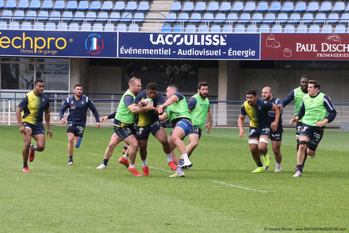 A la faveur des vacances de Pâques, le public était venu nombreux pour assister à l’entrainement des Jaune et Bleu. Cette semaine marque le retour du TOP 14, avec un déplacement important dans le Béarn ce samedi à 17h. Après l’élimination frustrante en quart de finale de la Challenge Cup, les joueurs clermontois, sont désormais focalisés sur ce déplacement pour affronter Pau, une équipe en quête de points dans la course au maintien et qui se rendra à Brive en suivant pour un match déterminant pour leur fin de saison.