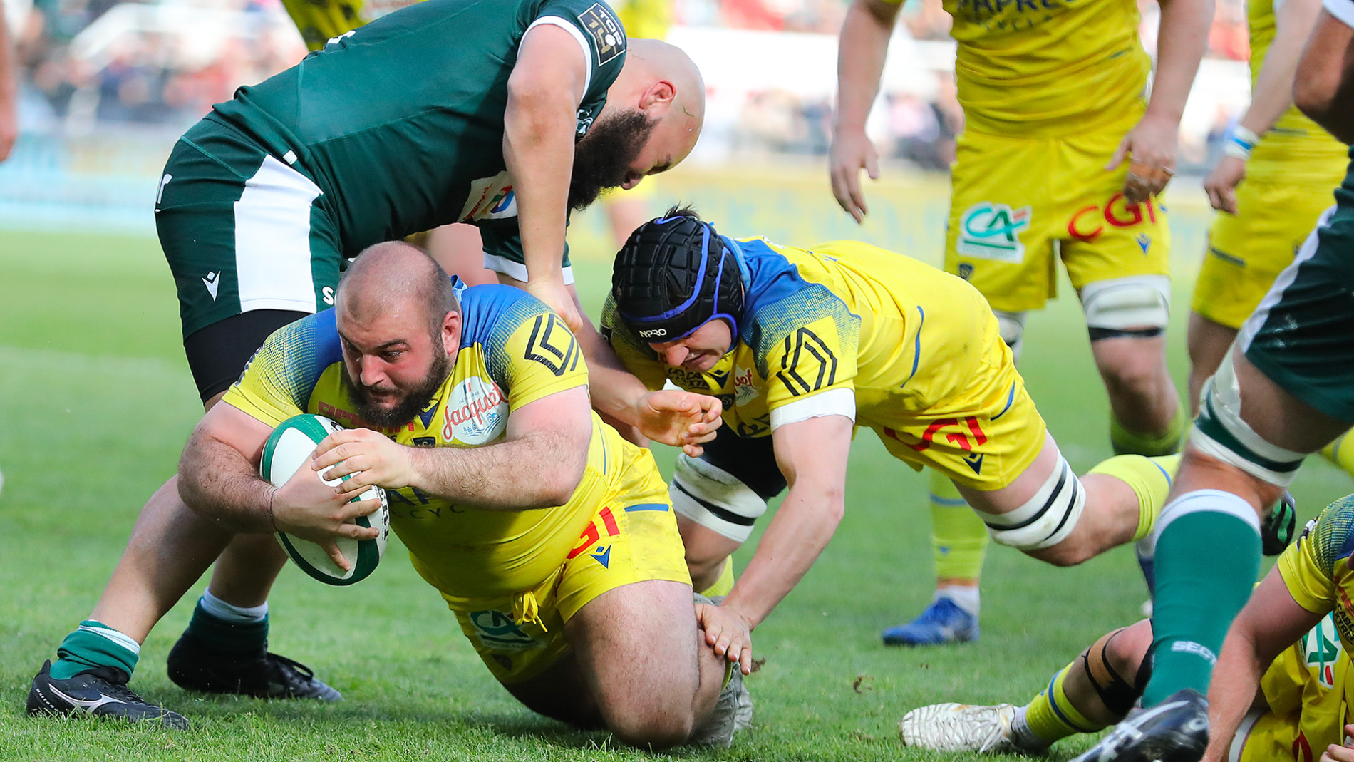Comme la première période, la seconde démarre avec cette même impression que les Auvergnats sont bien plus dangereux que leurs homologues béarnais mais ont de grosses difficultés à mettre de l’ordre dans leur jeu pour maîtriser cette rencontre. Après une nouvelle série de charges et un travail colossal de la troisième ligne Dessaigne-Tixeront -Lee, ce sont les Palois qui concrétisent leur première venue dans le camp de l’ASM. Avec un ballon récupéré, les joueurs de la Section sont tout près de déchirer la défense qui se met à la faute et offre une pénalité sous les poteaux. Les Béarnais la jouent à la main et envoient leur plus gros porteur de balle (Gorgadze) sous les poteaux face à une défense fixée. Le break est fait pour les Palois (20-6) d’autant que quelques minutes plus tard su une nouvelle offensive de l’ASM l’arbitre de la rencontre accorde à la vidéo puis rappelle la vidéo pour annuler un essai de Lucas Dessaigne pour une suspicion d’en avant… Clermont a désormais tous les ballons et met du rythme dans le sillage de Baptiste Jauneau. Après une longue séance qui balaye le terrain, George Moala fait la différence tout seul en puissance avec trois ou quatre défenseurs sur le dos (65e). Quelques nouvelles imprécisions, en touche, dans le jeu courant ou balle en mains, grignotent le chronomètre des Jaune et Bleu qui laissent encore filer 3 points (71e pénalité de Henry) avant que Baptise Jauneau ne se propose en soutien intérieur pour un essai qui récompense sa détermination (79e). Il ne reste que quelques secondes à jouer mais la défense béarnaise bloque immédiatement l’initiative clermontoise et scelle la victoire de son équipe.