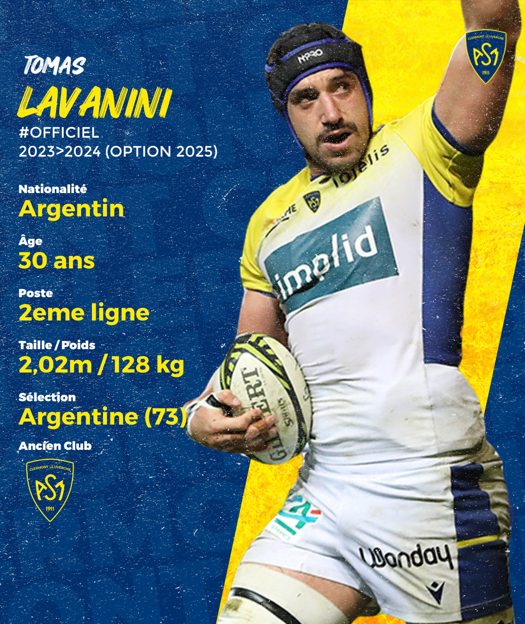 Le seconde ligne international des Pumas, Tomas Lavanini (30 ans, 79 sélections) prolonge son engagement avec les Jaune et Bleu d’une saison (plus une optionnelle). Il portera les couleurs de l’ASM au moins jusqu’en juin 2024 (option 2025).