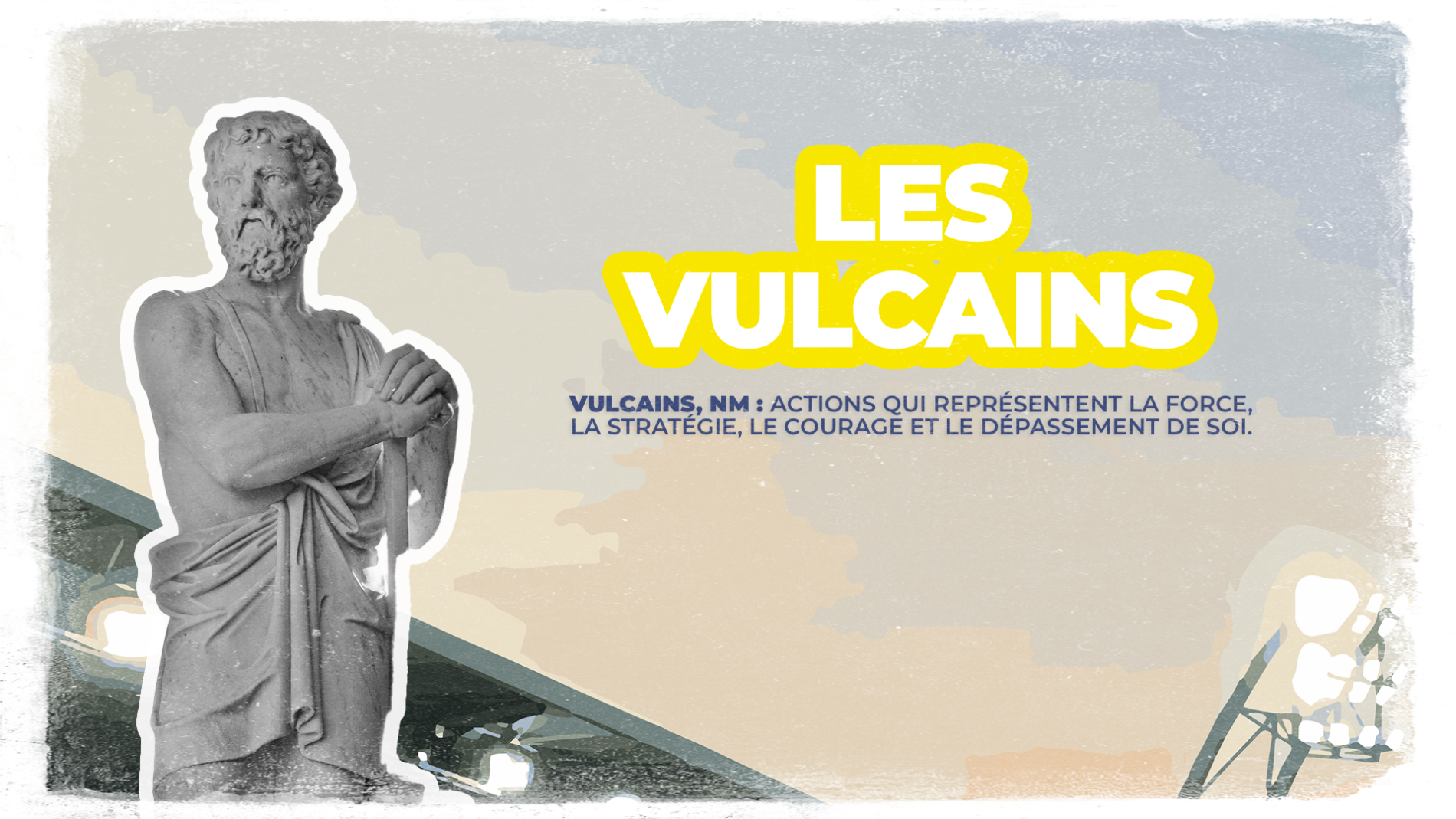 Mais les Vulcains, ce n’est pas uniquement cela… Ce sera aussi une épreuve sur le thème « Les Jaunards et la culture » qui fera la place belle à l’imagination et à la créativité de nos joueurs, pour tenter de séduire un Jury spécialement composé pour l’occasion.