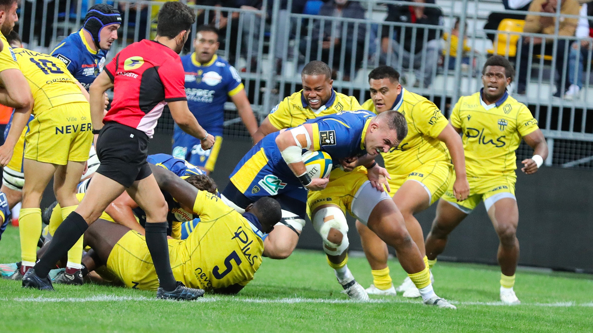 En plus de la structure, les hommes de Christophe Urios apportent l’intensité dans ce deuxième acte débuté par deux actions défensives de Rob Simmons qui dégage beaucoup d’expérience et de sérénité au paquet d’avants. Quelques fautes de mains retardent l’échéance pour les locaux mais dans le sillage d’un Baptiste Jauneau juste et incisif, Clermont continue d’accélérer. A l’heure de jeu, Nevers qui jusque-là tenait le défi physique imposé par les Auvergnats montre des signes de faiblesses. Lucas Dessaigne est le premier à en profiter (62e) puis quelques minutes plus tard, après un petit côté bien initié par le démi-de mélée clermontois en compagnie de Samuel M’Foudi, c’est Paul Jedrasiak, l’un des régional de l’étape, qui franchit la ligne d’essai adverse après une charge autoritaire dans l’axe du regroupement (68e). Les Jaune et Bleu reprennent l’avantage et déroulent à l’image de ce débordement de Lucas Dessaigne qui retrouve Baptiste Jauneau, intérieur, pour un essai imparable (70e). Intraitables en défense, les Clermontois ne lâchent rien et repoussent les attaques adverses grâce à une mobilité supérieure bien illustrée par la débauche d’énergie du jeune Lucas Oudard. Précis dans la zone de marque, ils inscriront un sixième essai par l’intermédiaire de Cyriac Guilly concluant une pénal-touche quelques minutes avant la fin de la rencontre.