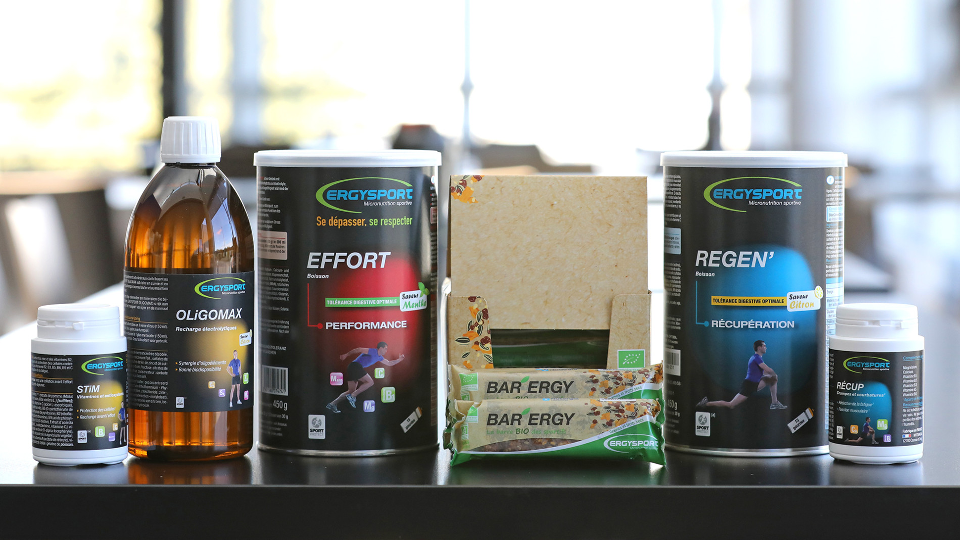 Le sport de haut niveau c’est la Formule 1, mais la plupart des gens roule de façon plus classique. La complémentation est-elle efficace et nécessaire pour les sportifs occasionnels ? « De mon point de vue, en dessous de 45 minutes d’effort d’intensité modérée dans des conditions classiques (hors canicule, grand froid, etc…) il n’y a pas besoin d’apports complémentaires particuliers simplement une bonne hydratation », précise Stéphane. « En revanche, au-delà de 45 minutes ou lors d’efforts plus intenses, l’anticipation devient une source de confort, de performance et de bonne santé. Il faut toujours penser à se nourrir ou s’hydrater avant de ressentir la sensation de faim ou de soif. De petits apports alimentaires réguliers en fonction de l’effort réalisé et du niveau du sportif, à l’aide des barres énergétiques, des gels ou des boissons d’effort Ergysport que nous utilisons, sont parfaitement adaptés. Ils permettent d’éviter notamment les sensations désagréables, les douleurs ou les lésions musculaires souvent observées chez pour les sportifs mal préparés nutritionnellement. Il faut aussi avoir conscience que tous les sportifs, les plus grands comme ceux du dimanche, ont une fenêtre métabolique et qu’il est recommandé d’apporter dans les 20 minutes suivant l’effort une bonne hydratation, quelques bons glucides et des protéines. La gamme ErgySport peut aider à cela ».