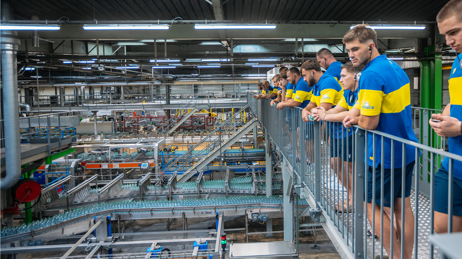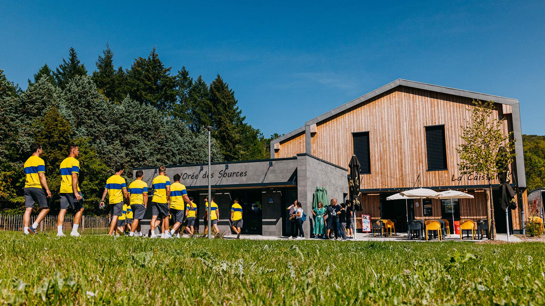 Les Jaune et Bleu ont profité de cette journée d’entrainement délocalisée pour découvrir l’histoire de Volvic. Accueillis à « l’Orée des sources » sur le site même de la source Volvic là où il y a 13 500 ans, une éruption volcanique a formé une multitude de couches rocheuses constituant un formidable filtre naturel dans lequel l’eau continue de s’écouler aujourd’hui, les joueurs auvergnats ont déjeuné avec le personnel de la société, désormais partenaire majeur du club et depuis cette saison au dos de notre maillot de Top 14.