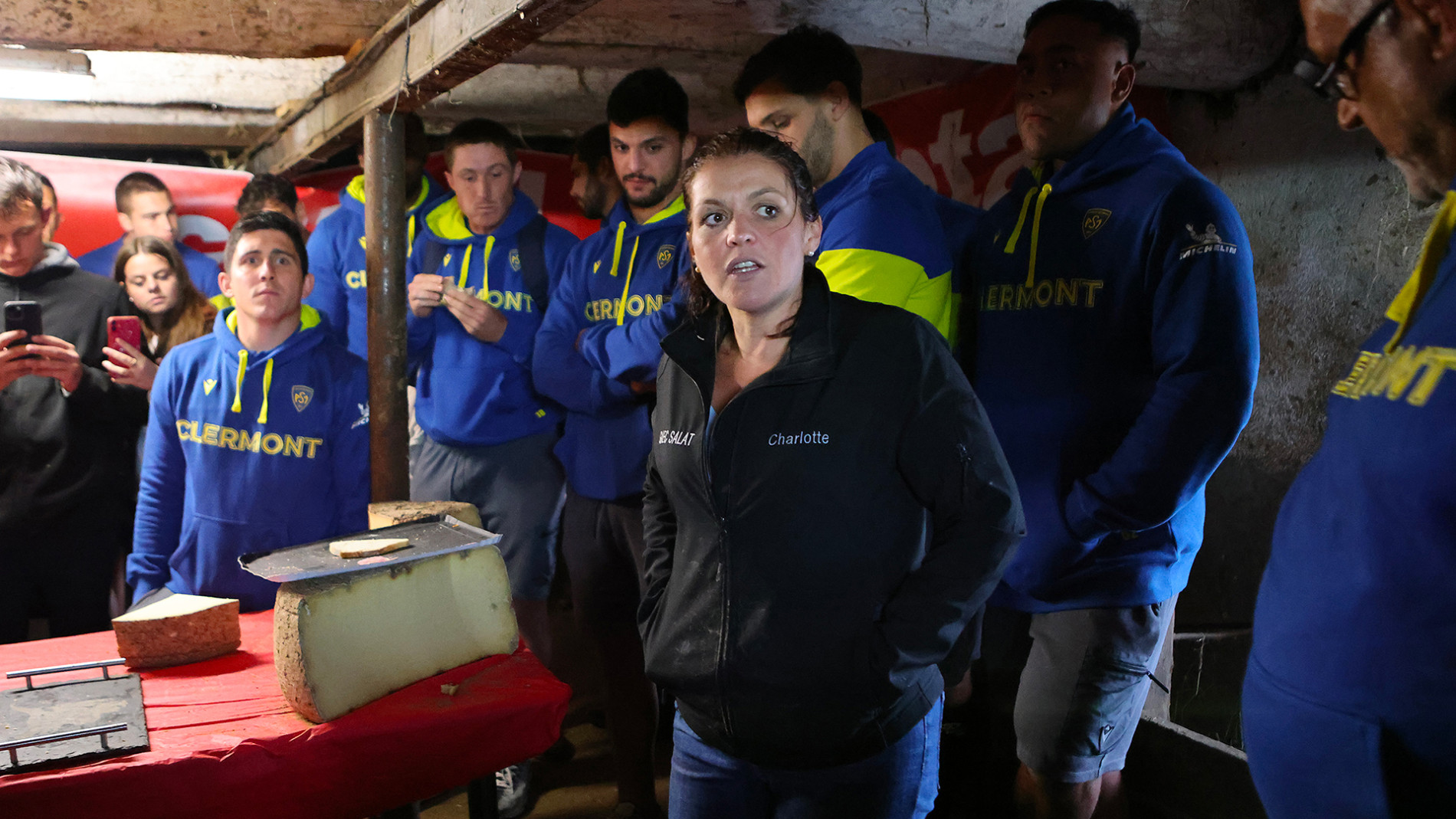 Au pied de l’éperon rocheux d’origine volcanique sur lequel la ville a été construite, les Jaune et Bleu ont terminé leur deuxième semaine de préparation avant la reprise du Top 14 sur les installations du RC Saint-Flour. Une journée au grand air balayée par quelques averses qui s’est terminée par une visite pleine de sens dans la ferme de Charlotte Salat, productrice du fromage Salat Tradition. L’éleveuse installée dans le Cantal à quelques minutes du stade de Saint-Flour qui possède un troupeau d’une centaine de vaches (exclusivement de race Salers) a partagé le temps de cette visite sa passion et son savoir-faire pour transformer le lait de son troupeau en fromage d’exception. Une manière de travailler dictée par des méthodes ancestrales et une passion ancrée au corps pour cette productrice engagée. Devant l’ancienne cave familiale où ses fromages prennent toutes leurs saveurs, une dégustation a été improvisée pour les Auvergnats dont les papilles garderont un excellent souvenir de leur déplacement dans le pays du Salers Tradition. Une journée Jaunarde comme on les aime…