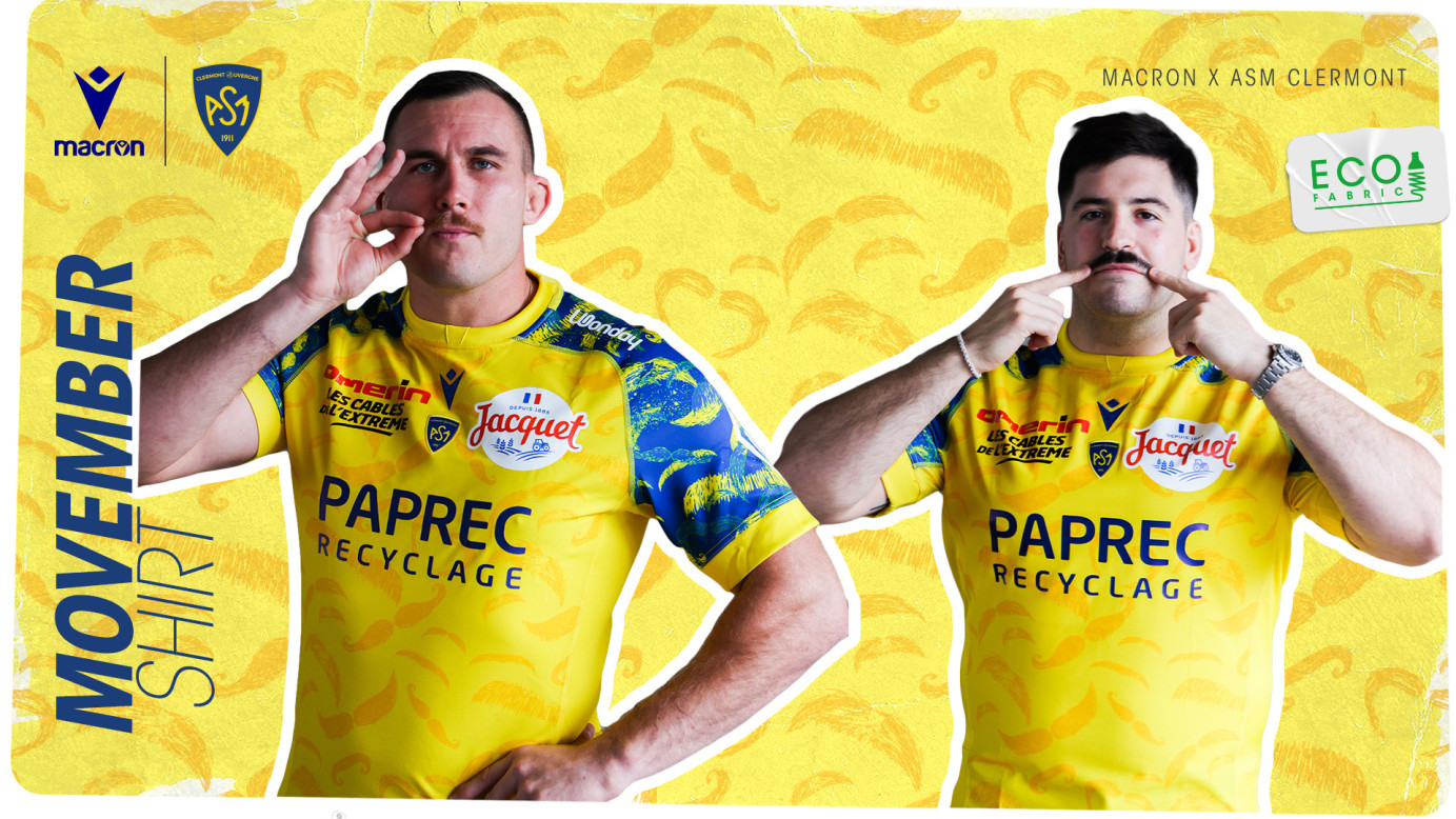 Tous ne l’auront pas sous le nez, mais pour la première fois, l’ensemble des joueurs de l’ASM Clermont Auvergne l’arboreront tout au long du mois de novembre sur un maillot collector réalisé en collaboration avec notre équipementier Macron afin de sensibiliser aux maladies masculines.
