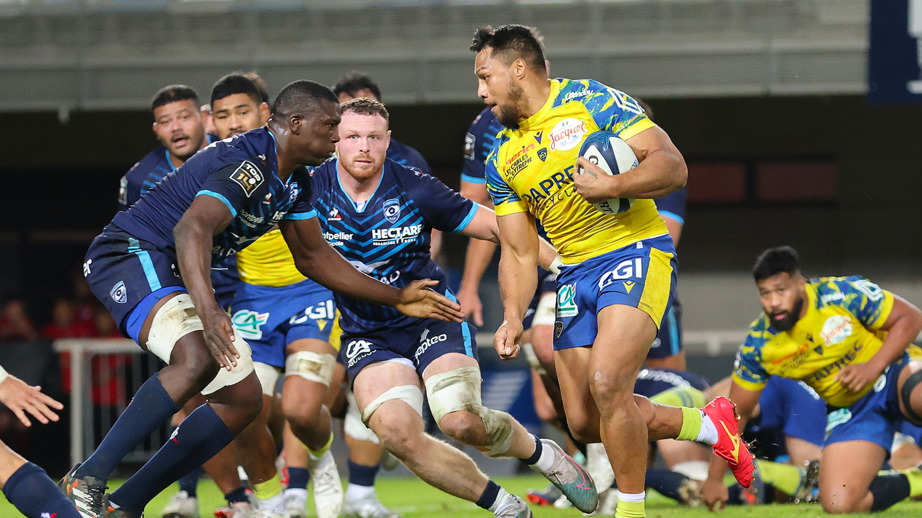 Face à des Montpelliérains au pied du mur, les Auvergnats ont du faire preuve de patience pour débloquer un match contenu dans le combat lors du premier quart d’heure. Malgré une nette domination territoriale des Clermontois grâce à la longueur du jeu au pied de Bezy, Urdapilleta et Rozière, le tableau d’affichage restera vierge durant de longues minutes avant que l’ouvreur argentin ne parvienne à le débloquer en récompensant une belle phase de domination des avants menés par un Folau Fainga’a de tous les combats. Au fil des minutes, les avants clermontois prennent le meilleur sur leurs adversaires et les charges de Lee, Kremer ou Yato pèsent sur la défense du MHR qui recule et s’effrite. Thibaud Lanen en profite pour déchirer la zone d’affrontement et parvient à jouer dans le dos de la défense. La différence est faite et l’action rebondit sur les extérieurs où Bautista Delguy fait parler sa pointe du vitesse pour inscrire le premier essai de la partie (3-10 à la 26e). Joris Jurand et Thomas Rozière animent le fond du terrain et parviennent à gagner de précieux mètres qui permettent au pack de jouer dans l’avancée. Les bulldozers avancent irrémédiablement et lorsqu’il n’y a plus de solution, il reste toujours George Moala qui fait sauter les derniers verrous à l’image de cette charge monstrueuse à 5 mètres de la ligne du MHR où il emportera les 3 derniers défenseurs pour un essai « à la Moala ». A la pause, Montpellier n’a pas vraiment vu le ballon et accuse un retard de 14 points.