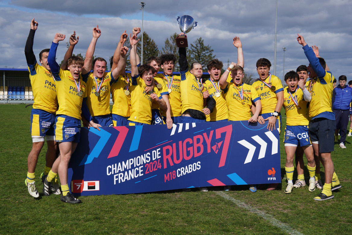 Après presque 8 mois de fonctionnement, il semblerait que le discours estival ne se soit pas évanoui aux portes d’un calendrier sportif parfois difficile à suivre. Le groupe Crabos est toujours invaincu après la phase de qualification pour les Play-Offs, et vient tout juste de décrocher le titre de Champion de France de rugby à 7, aux Gravanches. Ils sont également 6 joueurs à participer au festival 6 Nations U18, qui démarre en Italie cette semaine (4 français, 2 géorgiens). De leurs côtés, les U16 sont aussi toujours invaincus, et ont décroché une belle deuxième place aux championnats de France à 7. Pour couronner le tout, ce sont près de 20 jeunes joueurs des deux catégories, qui ont participé aux stages Elites Jeunes de France Rugby. Un contingent exceptionnel, qui met en avant la richesse des effectifs montferrandais, et le travail de formation effectué depuis le début de la saison.