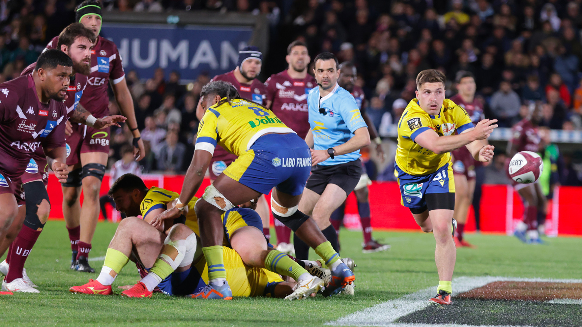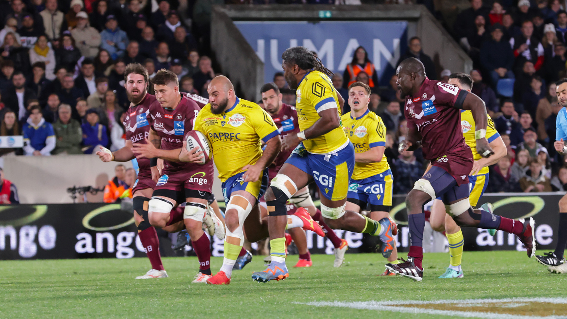 L’attaque bordelaise plutôt bien maîtrisée sur la première période va débuter la seconde avec bien plus d’inspiration. Après une bonne fixation des avants, c’est Tambwe qui se propose de son aile et fait la différence au centre du terrain. D’une passe, le ballon arrive dans les mains de Damian Penaud qui termine l’action d’un crochet intérieur. L’essai réveille Chaban qui prend feu dans le sillage de ses ailiers qui traversent le terrain. Un coup de pied de recentrage de Damian envoie Tambwe derrière la ligne avant qu’un coup de pied de déplacement offre à l’ancien clermontois un doublé (53e). En 10 minutes, les Girondins ont tué le match (34-0 à la 53e) et bonifié tous les ballons laissés en route par les Auvergnats. L’ASM ne baissera pourtant jamais les bras et essayera de venir mettre en difficulté la défense locale. Léon Darricarrère se propose avec beaucoup d’énergie, tout comme Giorgi Beria, auteur d’une belle entrée, ou Pita-Gus Sowakula, toujours aussi dynamique… mais ça ne suffit pas et les mètres sont difficiles à gagner malgré de nombreuses passes dans la latéralité. Il faudra un gros travail des avants pour récompenser la volonté de l’ASM avec un essai de Yohan Beheregaray à la 72e. Baptiste Jauneau était tout près de priver les Girondins du bonus offensif à la 78e après une belle percée mais Louis Bielle Biarrey revient à toute vitesse et bloque le demi-de-mêlée clermontois dans l’en-but. Le ballon est vivant mais une mauvaise passe offre un dernier ballon de récupération aux Bordelais qui vont l’offrir à Damian Penaud pour un sprint de 80 mètres pour un triplé…Cruel.