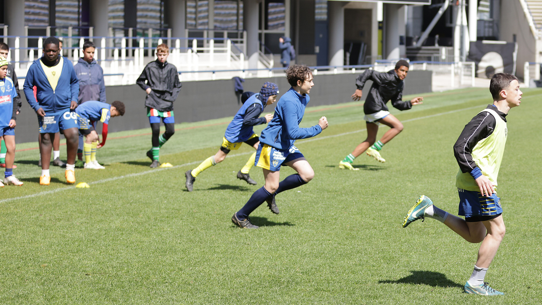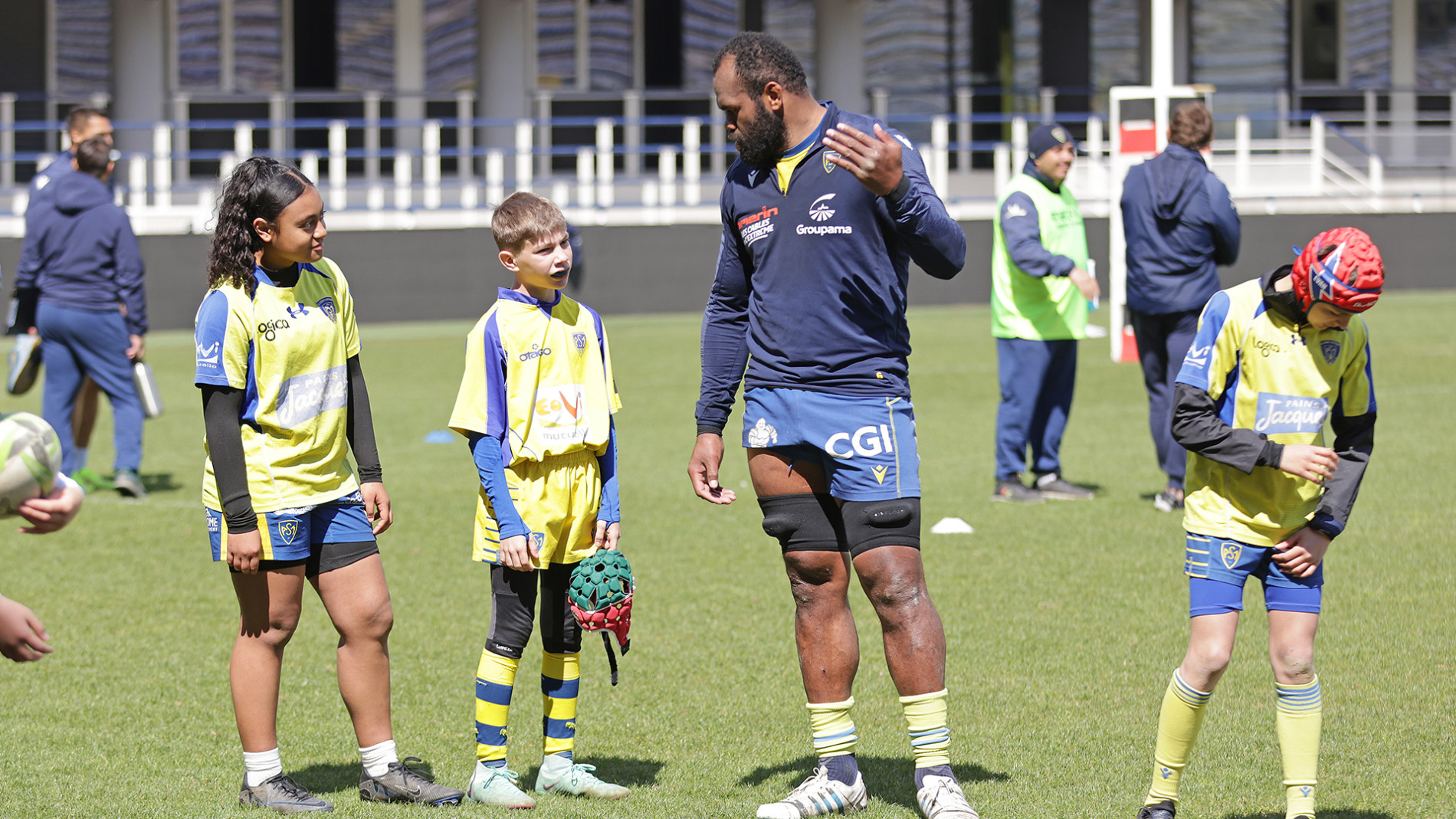 Ce mardi, après l’entraînement ouvert au public, les U14 se sont rendus sur le terrain d’honneur du stade Marcel-Michelin pour un temps d’entraînement accompagnés par les joueurs de l’ASM. Un moment d’échange et de partage entre nos jeunes de l’école de rugby et nos joueurs professionnels.