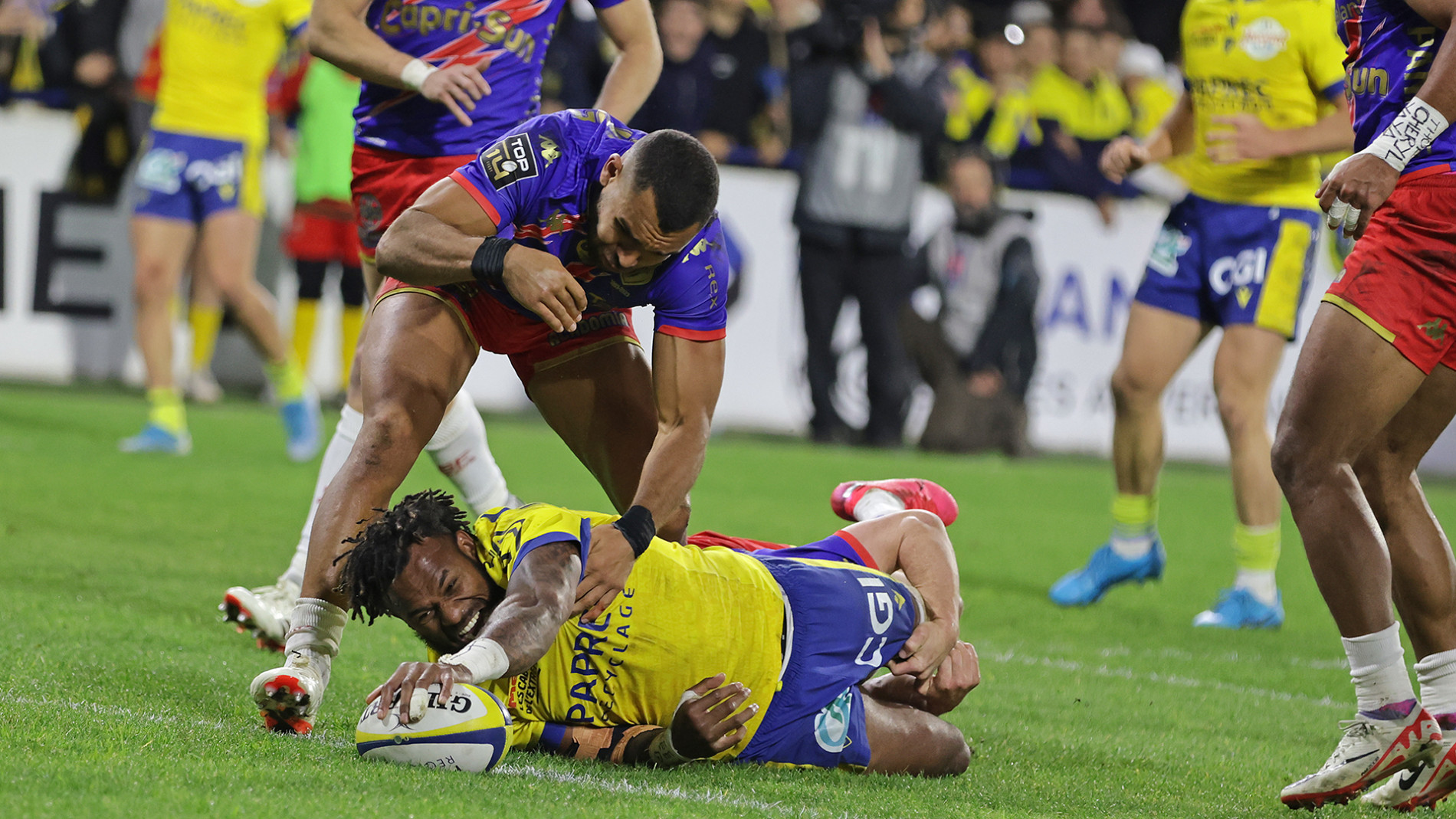 Sur la première action de la seconde période, Alivereti Raka fait encore parler la poudre sur son aile en se débarrassant de son adversaire pour un doublé. Il est tout près d’inscrire son triplé quelques minutes plus tard mais un passage à vide d’un leurre auvergnat repoussera l’échéance. Qu’importe les avants continuent leur travail de sape et avancent dans les contacts faisant reculer la défense parisienne qui a du mal à se déplacer. Concentré dans l’axe, le Stade Français en délaisse les extérieurs laissant le boulevard de Raka ouvert. L’ailier clermontois ne se gêne pas pour s’offrir un triplé (68e). Paris ne lâche pas l’affaire et tente bien de tenir le ballon mais la défense auvergnate est intransigeante et fait commettre des erreurs aux visiteurs. Un ballon de récupération bien exploité par Newsome fait une nouvelle différence et Anthony Belleau, auteur d’un gros match, se récompense en se proposant à l’intérieur de son arrière pour un superbe essai… qu’il célèbre par une joyeuse glissade en simultanée avec Alivereti Raka. Le bonus offensif est doublement sécurisé et l’essai en toute fin de match de Melikidze ne change rien.