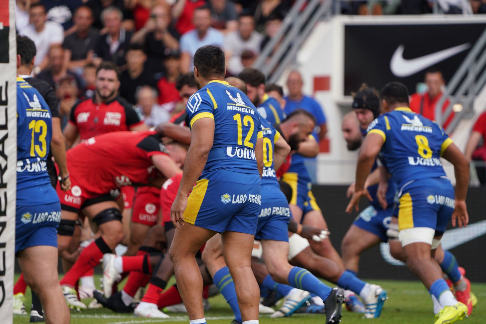 Carton jaune : Ollivon (23e anti-jeu), Yato (41e, plaquage dangereux)