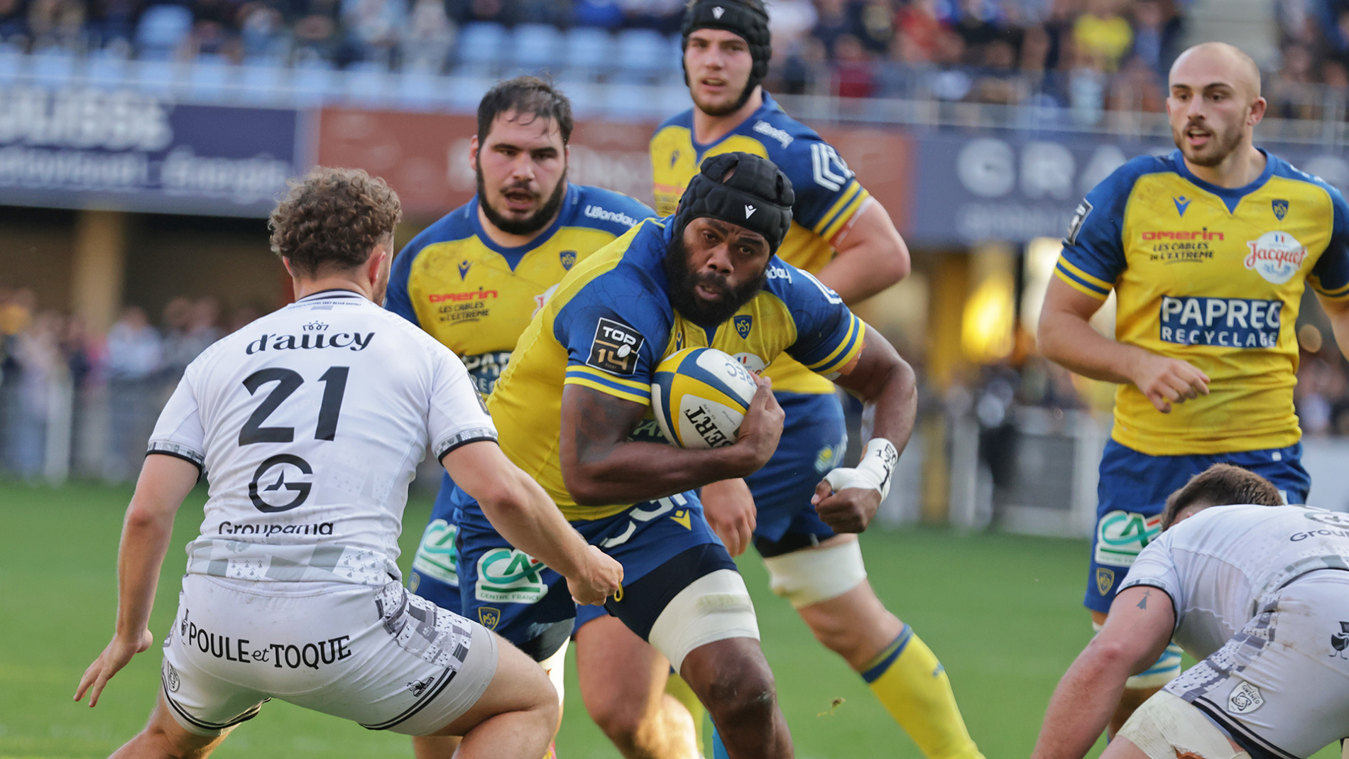 Avec 9 essais inscrits face à une valeureuse équipe bretonne, les Jaune et Bleu engrangent un 3ème bonus offensif à domicile et une quatrième victoire au Michelin. Un beau 19 (points pris) sur 20 (possibles) dans un match parfois brouillon et débridé largement dominé par des Clermontois plus puissants et efficaces. Les Jaune et Bleu se débarrassent également d’un vieux signe indien puisque cela faisait 2 saisons qu’ils n’avaient plus battu le promu… Avec 55 points inscrits, c’est fait… et bien fait puisque cela faisait également 3 ans et demi qu’ils n’avaient pas marqué autant d’essais dans un match officiel.