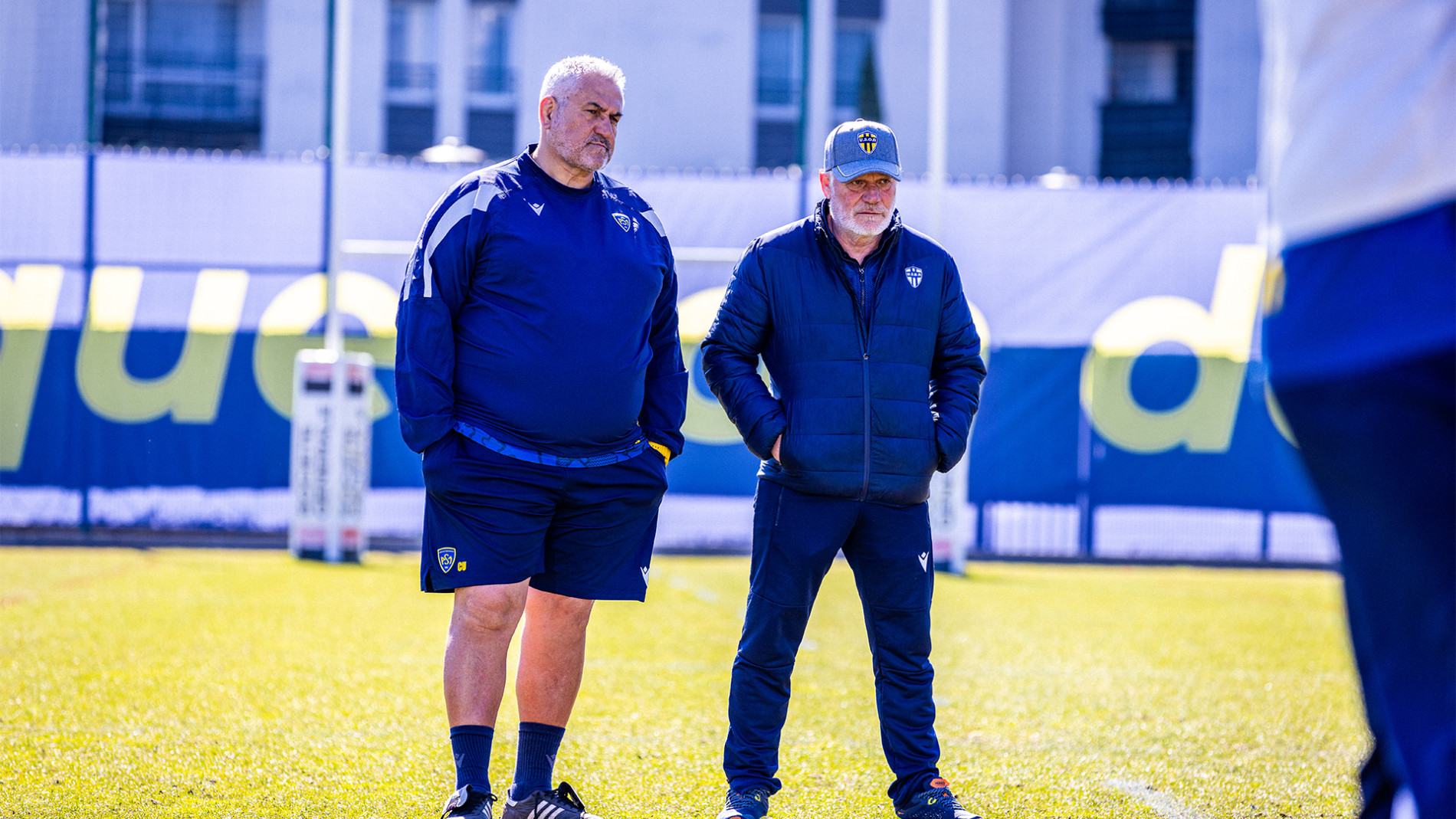 « Il y a beaucoup d’avantages à partager des journées comme celle-ci » se réjouit Frederic Charrier l’entraineur de l’attaque clermontoise. « Cela nous permet de travailler face à des joueurs qui nous connaissent peu, qui ne s’approprient pas nos annonces comme peuvent le faire nos joueurs habituellement lors de ces séances à haute intensité. Cela nous permet de nous rapprocher des conditions de match… » Même si les contacts restent raisonnés et la séance contrôlée, l’approche tactique est idéale et les échanges entre les staffs ainsi que les manières des travailler permettent de sortir du cadre habituel. Bouleverser les habitudes, rompre avec les routines afin de renforcer le focus sur le prochain match : voilà l’objectif de cette journée de partage à laquelle est venu s’ajouter l’arbitre international Tual Trainini (dans le cadre des échanges organisés de façon régulière avec la FFR) histoire de se rapprocher encore un peu plus des conditions d’une rencontre de Top 14. Xavier Pemeja qui connait et apprécie Christophe Urios a ainsi répondu favorablement à l’appel de son confrère…