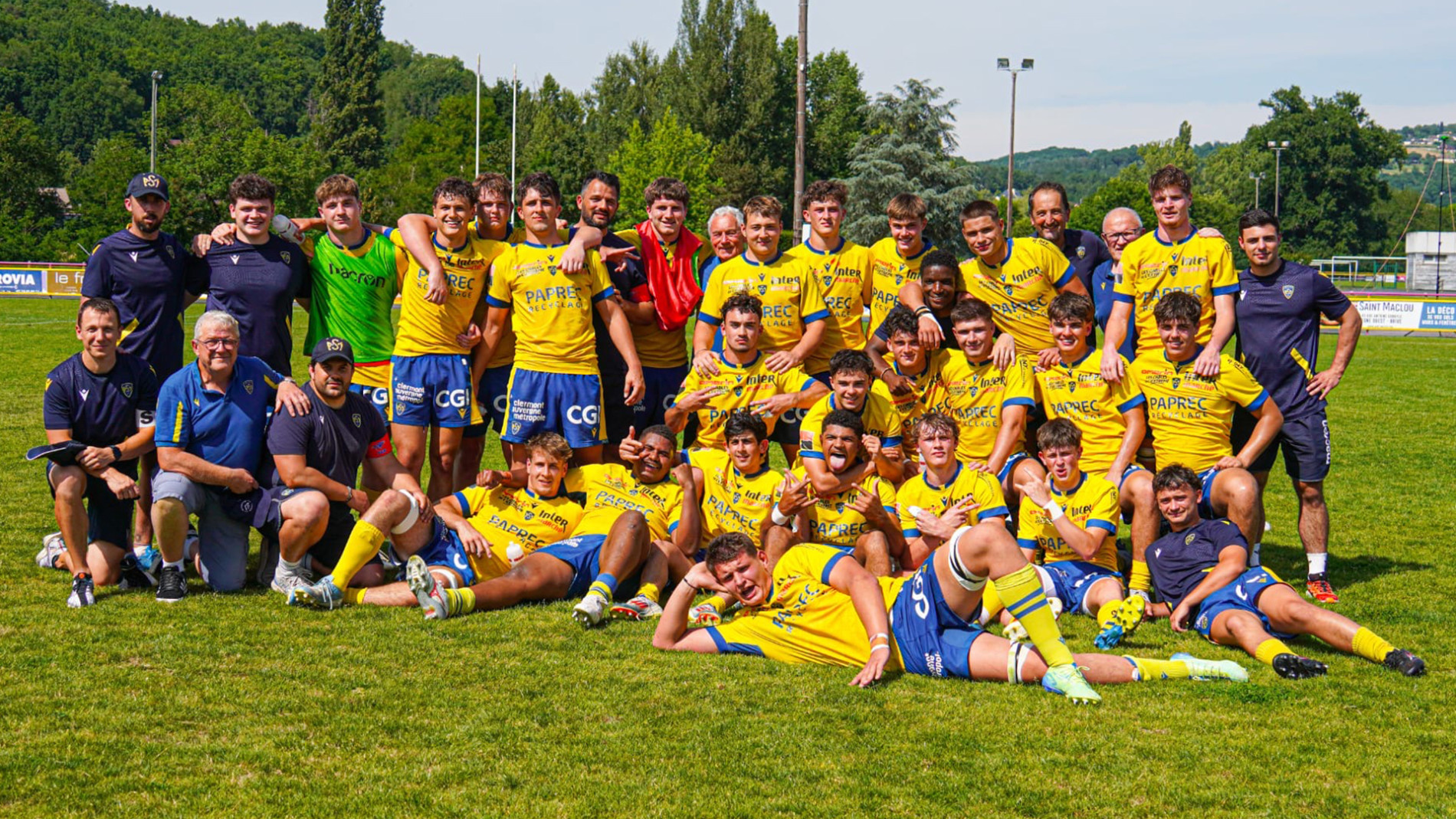 Ce samedi 31 mai avait lieu le quart de finale du championnat de France pour notre équipe Crabos. Opposés à l’ogre toulousain, nos Jaune et Beu ont rendu une copie presque parfaite pour s’imposer (30-0). Ils iront se mesurer au CABBG ce samedi 7 juin pour une place en finale. Un étage en dessous, c’est au tour de nos cadets Alamercery de débuter, ce samedi 7 juin, leur phase finale avec un match contre Montpellier à Mende.