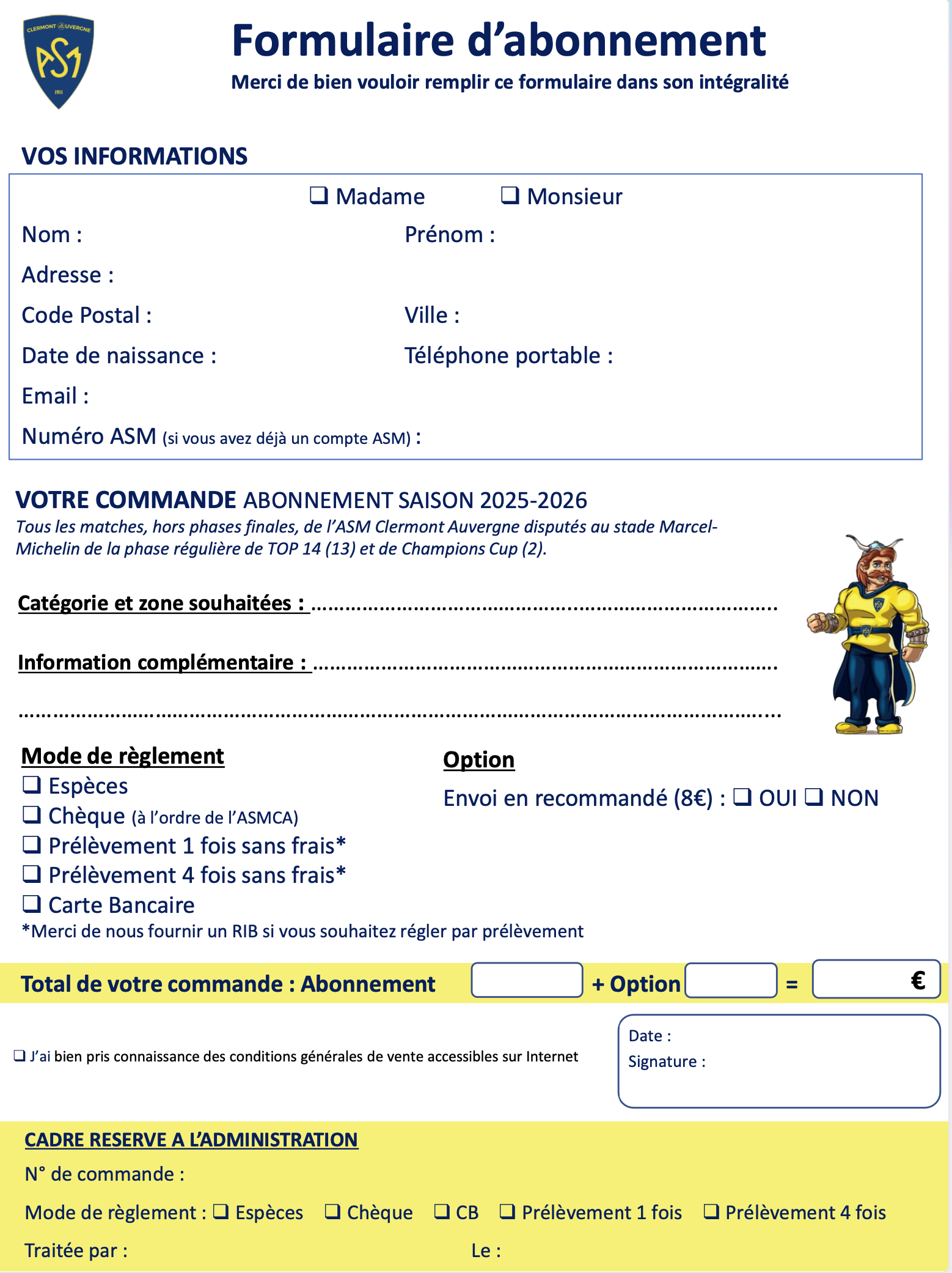 Le nouveau site billetterie est donc opérationnel, vous pouvez souscrire votre abonnement en ligne, vous permettant de choisir votre place sur plan, selon les disponibilités proposées dans chaque catégorie du stade.