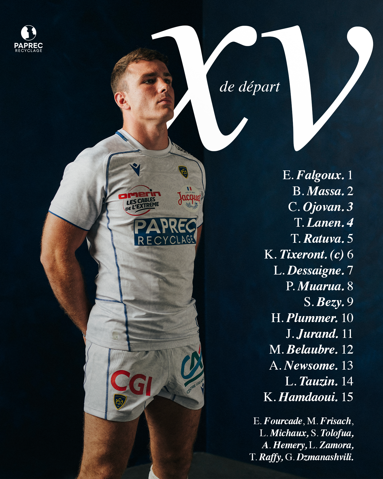 Derrière, Sébastien Bézy formera la charnière avec Harry Plummer pour la deuxième fois de la saison (après la réception de Montauban). Comme nous l’avons évoqué plus haut c’est une paire de centres inédite qui occupera le milieu de terrain clermontois puisque Mathys Belaubre (retour de prêt de l’USON Nevers) sera associé à Alex Newsome. Lucas Tauzin est ainsi déplacé sur l’aile gauche où il sera associé à Joris Jurand et Kylan Hamdaoui déjà titulaires dans l’Hérault. Enfin, Lucas Zamora et Tom Raffy complètent le groupe auvergnat pour cette dixième journée de Top14.