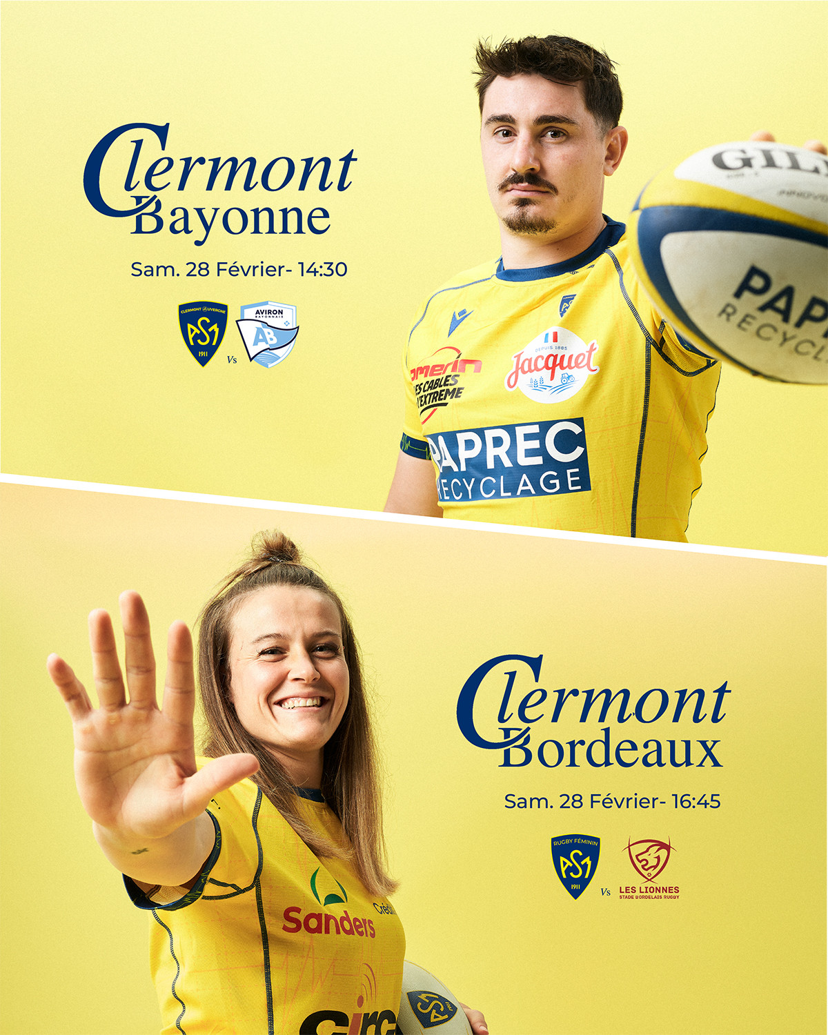 C’est une grande journée de Rugby qui sera proposée aux supporters auvergnats pour le retour du rugby au Michelin plus d’un mois après la victoire face à la Rochelle. En début d’après-midi (14h30), les Jaune et Bleu défieront les joueurs de l’Aviron Bayonnais avec dans le viseur une place dans le Top 6 du Top 14.