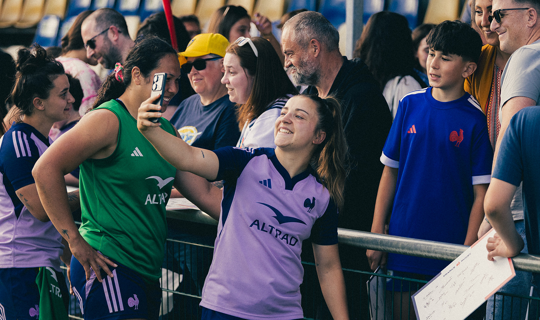 Les 5 Auvergnates seront bien présentes sur la pelouse du Michelin pour la réception des Irlandaises, samedi à 21h10 dans le cadre de la 3ème journée du Tournoi des 6 Nations Féminin. Comme lors des deux premières journées de compétition, Mathilde Lazarko, Assia Khalfaoui et Anaïs Grando seront titulaires pendant qu’Alexandra Chambon et Yllana Brosseau débuteront sur le banc. Les Clermontoises, ainsi que le reste de leurs coéquipières étaient ce jeudi à l’entrainement sur la pelouse du stade des Gravanches pour une séance ouverte au public… et un joli bain de foule.