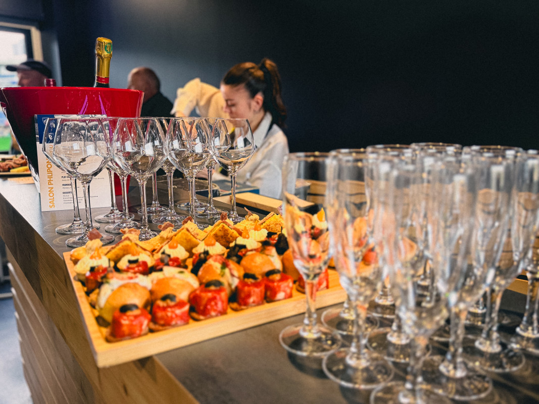 Dans ce lieu brut, l’essentiel reprend toute sa place. Autour d’un buffet terroir généreux, vos invités partageront un moment de convivialité, portés par la passion du rugby et le charme discret de ce salon atypique. Avec seulement 25 places, le Salon Phliponeau offre une expérience intimiste, idéale pour nouer des liens dans une ambiance décontractée, au plus près des valeurs fondatrices du club.