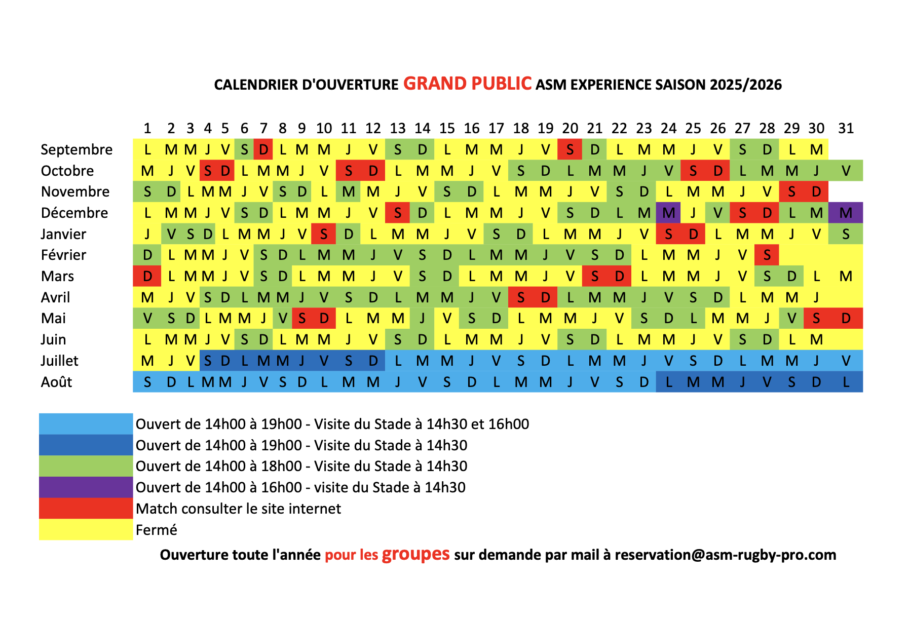 Deux façons d'approfondir votre connaissance du rugby : l'espace ASM Experience, un « parc à thème » unique en France dédié exclusivement au rugby et à la vie du club, et la visite guidée du stade pour découvrir l'envers du décor. Alors… entrez sous la mêlée !