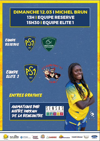 ASM Romagnat Rugby Féminin – AC Bobigny 93 Rugby, dimanche 12 mars à 15h30, stade Michel-Brun –Romagnat (entrée gratuite, équipe réserve à 13h)