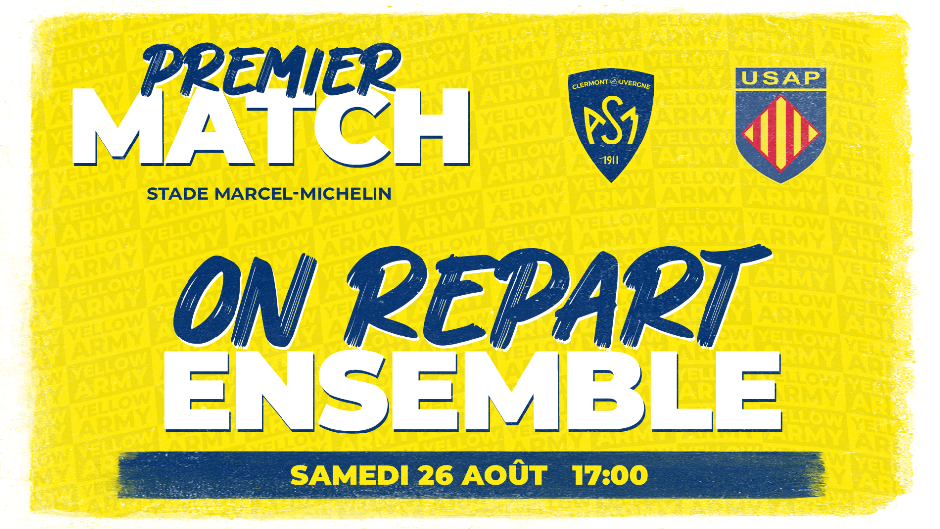 On repart ensemble pour cette nouvelle saison ! Dès le samedi 26 août à 17 heures, le stade Marcel-Michelin retrouvera ses couleurs et son ambiance de feu pour accompagner les Jaune et Bleu lors du lancement de leur saison à domicile. Ce sera le moment d’écrire la première page d’une histoire dont vous serez les acteurs, à laquelle vous participerez en apportant votre ferveur et votre passion, en faisant vibrer notre stade.