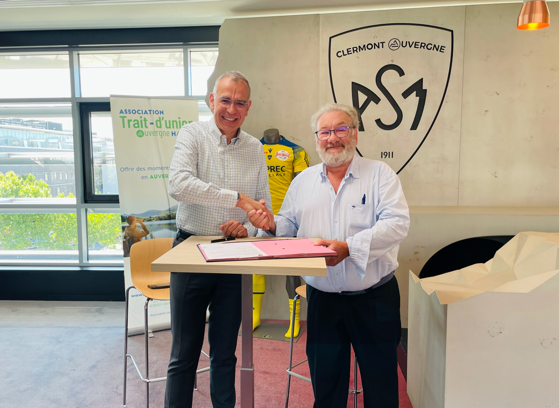 Une première rencontre en mars 2023 entre l’Association Trait d’union Auvergne Handis et les équipes de l’ASM Clermont Auvergne puis de nombreux échanges qui donnent lieu à une collaboration : l’accessibilité aux matchs de l’ASM gratuitement toute l’année pour les personnes à mobilité réduite ainsi que quelques places pour tous les types de handicaps.