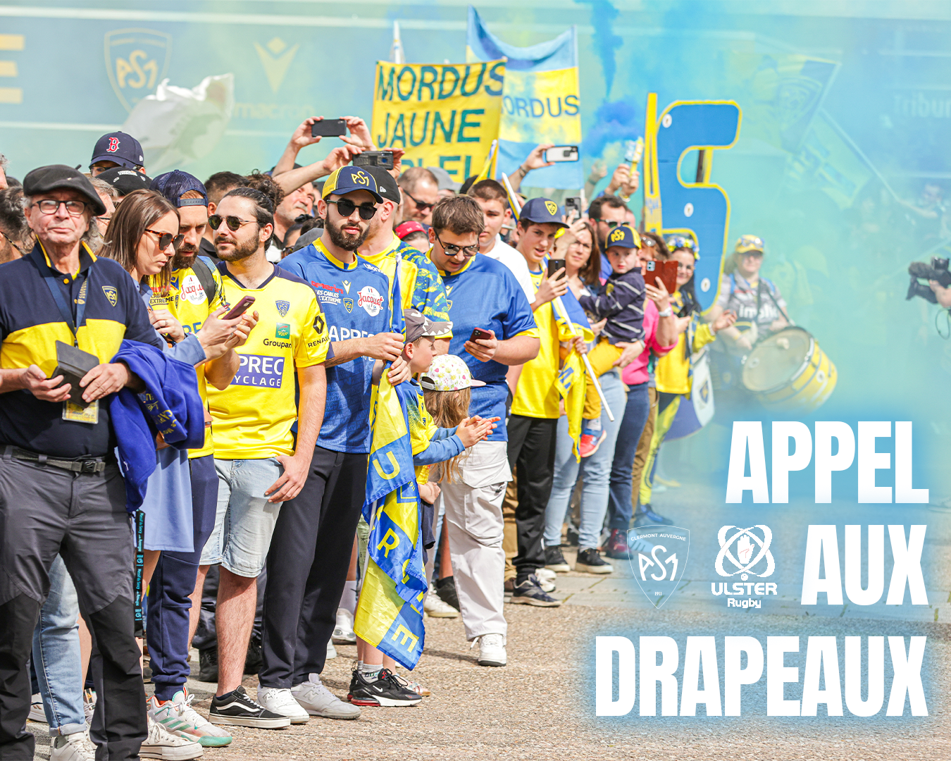 Les Clermontois se sont offerts un deuxième match de phases finales à domicile en écartant les sud-africains des Cheetahs. Samedi prochain (coup d’envoi à 13h30), c’est la province de l’Ulster qui se présente au Michelin. C’est un accueil volcanique que nous vous proposons avec cet appel aux drapeaux lors de ce grand rendez-vous européen face à une province nord-irlandaise redoutable et habituée aux ambiances sulfureuses. On se donne rendez-vous, samedi au Michelin, avec une Yellow Army réunie derrière des milliers de drapeaux et les mêmes couleurs : Jaune et Bleu.