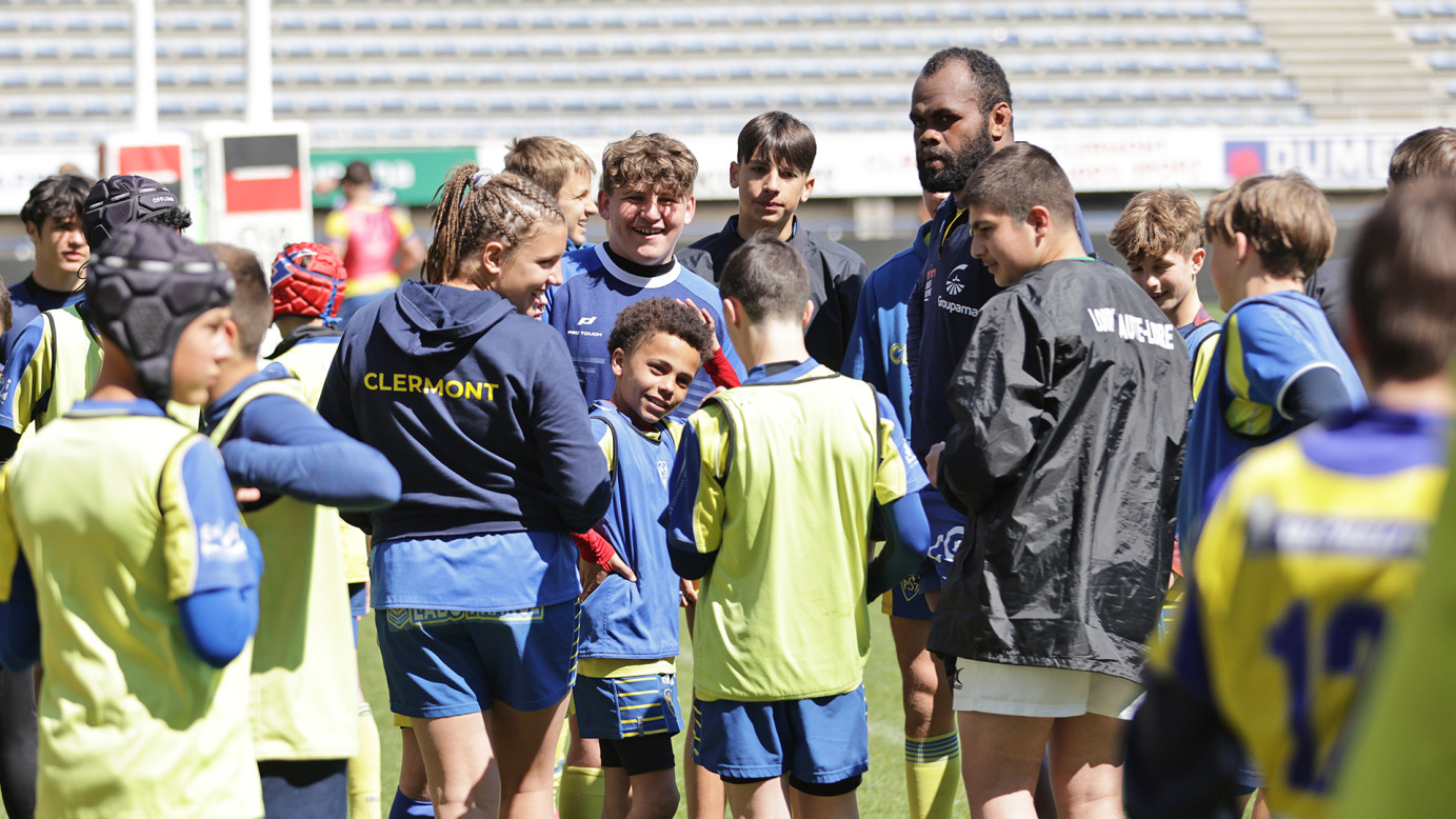 Ce mardi, après l’entraînement ouvert au public, les U14 se sont rendus sur le terrain d’honneur du stade Marcel-Michelin pour un temps d’entraînement accompagnés par les joueurs de l’ASM. Un moment d’échange et de partage entre nos jeunes de l’école de rugby et nos joueurs professionnels.