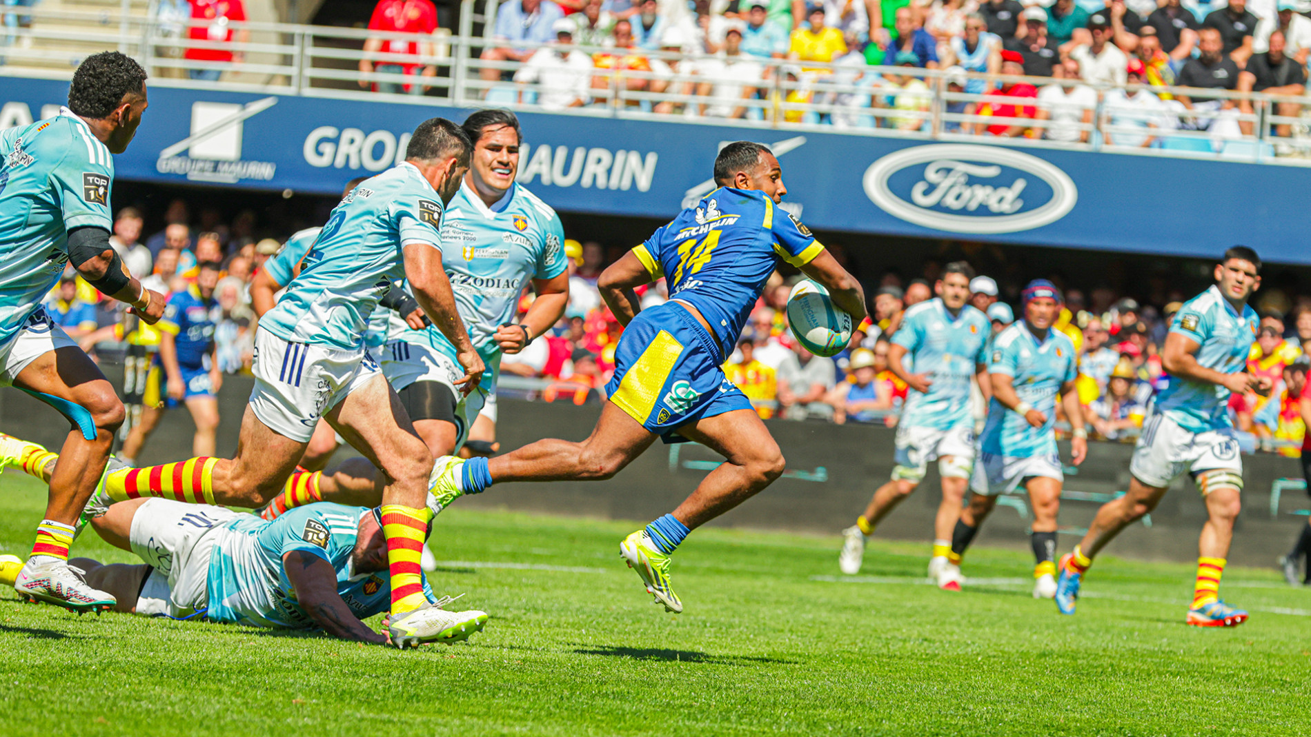 Pour l’USAP : 3 essais de Dubois (40e), McIntye (44e) et Veredamu (68e), 2 pénalités (6e et 49e) et 2 transformations de McIntyre