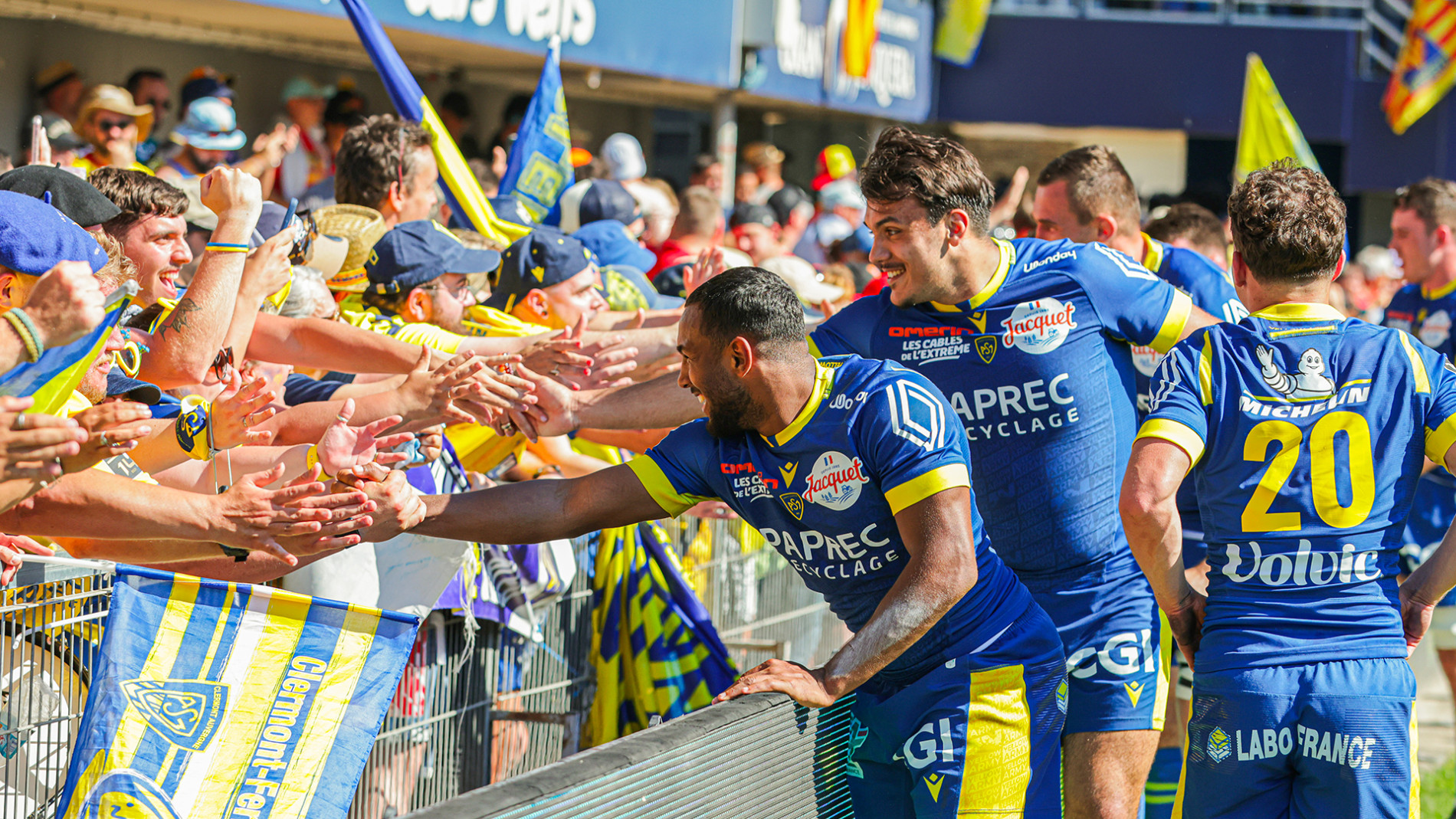 La seconde période ne démarre pas vraiment mieux pour les hommes de Christophe Urios qui perdent leur premier ballon au centre du terrain. L’USAP en profite et décale Jake McIntyre en bout de ligne. L’ouvreur australien déborde le dernier défenseur dans un tout petit espace pour un essai qui ressemble à un premier break (15-3). Mais dès le renvoi une grosse pression clermontoise permet à Anthony Belleau de réduire la marque (15-6). L’USAP poursuit son forcing pendant que McIntyre enfile les pénalités (18-6, puis 21-6 à la 53e). Alors que l’USAP semble maîtriser les choses et occupe avec l’aide du vent, Brazo perd ses nerfs et plaque (en dehors de l’action et trop haut) l’ouvreur clermontois, laissant ses coéquipiers en infériorité numérique. En suivant, Clermont choisit la penal-touche et après une gosse fixation des avants, la paire de centres ( de 19 ans Belaubre – Darricarrère) fait la différence et franchit la ligne. C’est le bon moment pour Clermont qui appuie dans le petit périmètre aux les Catalans souffrent. Giorgi Beria inscrit dans la foulée le deuxième essai des siens peu après l’heure de jeu. Les Auvergnats ne sont plus qu’à 4 points de l’USAP et même si Veredamu fait un nouvel exploit en poussant au pied un ballon dans le dos de la défense jaunarde, le rapport de force s’est inversé aves les bonnes entrées de Benjamin Urdapilleta ou le retour sur le terrain de Peceli Yato. Une deuxième fois réduit à 14, l’USAP subit et recule désormais sur tous les impacts. Aimé-Giral tremble et le public gronde. Une nouvelle série de pick and go récompense l’abnégation clermontoise et envoie Giorgi Dzmanaschvili en terre promise essuyant une nouvelle bronca. L’USAP est désormais dans le viseur des Jaune et Bleu à 5 minutes du terme de ce match. Un dernier échange de jeu au pied va orienter le sort de ce match. Les Perpignanais en manque de fraicheur sont pris dans le duel aérien où surgit Baptiste Jauneau. Malgré la fatigue, les 80 minutes et le désavantage de taille, le capitaine clermontois récupère le ballon dans le duel en l’air et se débarrasse du dernier défenseur pour s’offrir un sprint vers la victoire. Benjamin Urdapilleta, précieux lors de son entrée par la précision de son jeu et son implication défensive, prend tout son temps pour passer la transformation qui met l’ASM à l’abri d’un retour. D’autant que Naqalevu (78e auteur d’un plaquage haut) est exclu à son tour et donne à l’ouvreur argentin une occasion de solder le tableau d’affichage et d’éteindre Aimé-Giral.