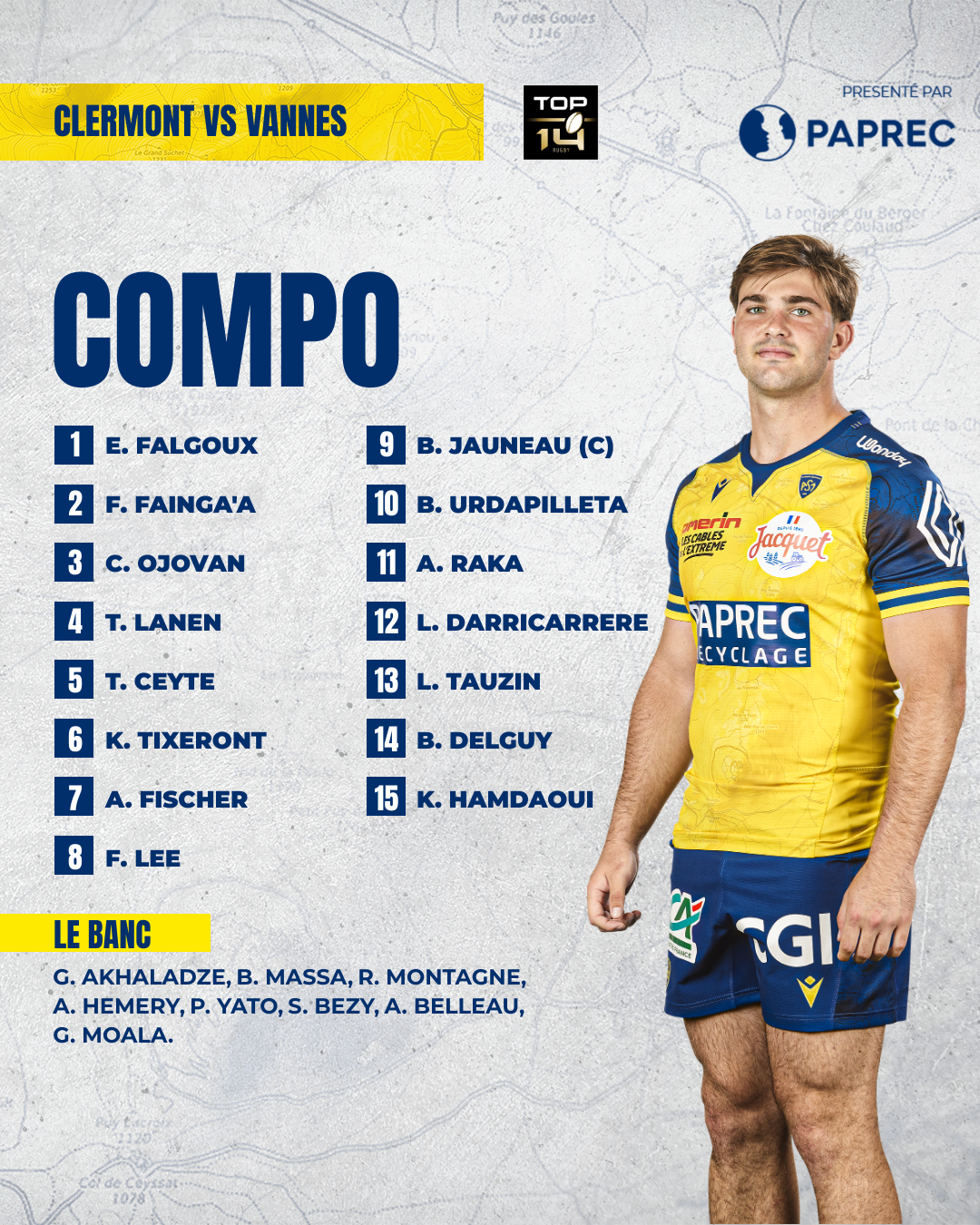 Pour la réception des Vannetais, les Clermontois reconstituent la paire de centres Léon Darricarrère – Lucas Tauzin la plus utilisée depuis le début de saison. Kylan Hamdaoui qui avait laissé le poste d’arrière à Alex Newsome depuis la défaite à Perpignan est, lui aussi, relancé face aux Bretons.