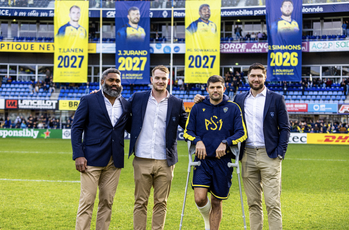 Les supporters du Michelin ont eu la primeur de l’annonce des prolongations de Thibaud Lanen, Joris Jurand, Pita-Gus Sowakula jusqu’en juin 2027 (+1) ainsi que Rob Simmons jusqu’en juin 2026 (+1) grâce à une cérémonie « surprise » en marge de la rencontre de Champions Cup face aux Italiens de Trévise. Une belle nouvelle pour le groupe clermontois qui se construit dans la continuité en prolongeant plusieurs de ses cadres.