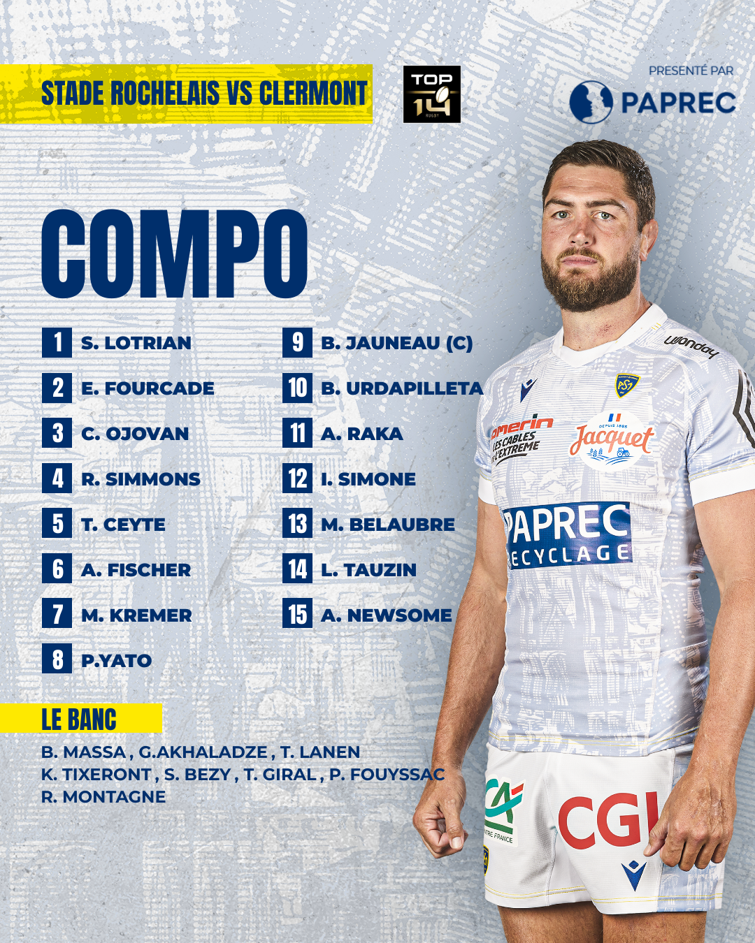 En première ligne, Sacha Lotrian retrouve la rotation après l’intermède européen. Il sera dans une première ligne où seul Etienne Fourcade enchaine puisque Cristian Ojovan, sur le banc à Dublin, débutera à la Rochelle. Thomas Ceyte, ménagé face au Leinster retrouve Rob Simmons avec qui il n’a joué qu’un seul match en début de saison (face à Pau). Peceli Yato recule, lui, d’un cran pour occuper le poste de troisième ligne centre entouré de Marcos Kremer et Alexandre Fischer qui promettent un beau combat au niveau de la ligne d’affrontement.