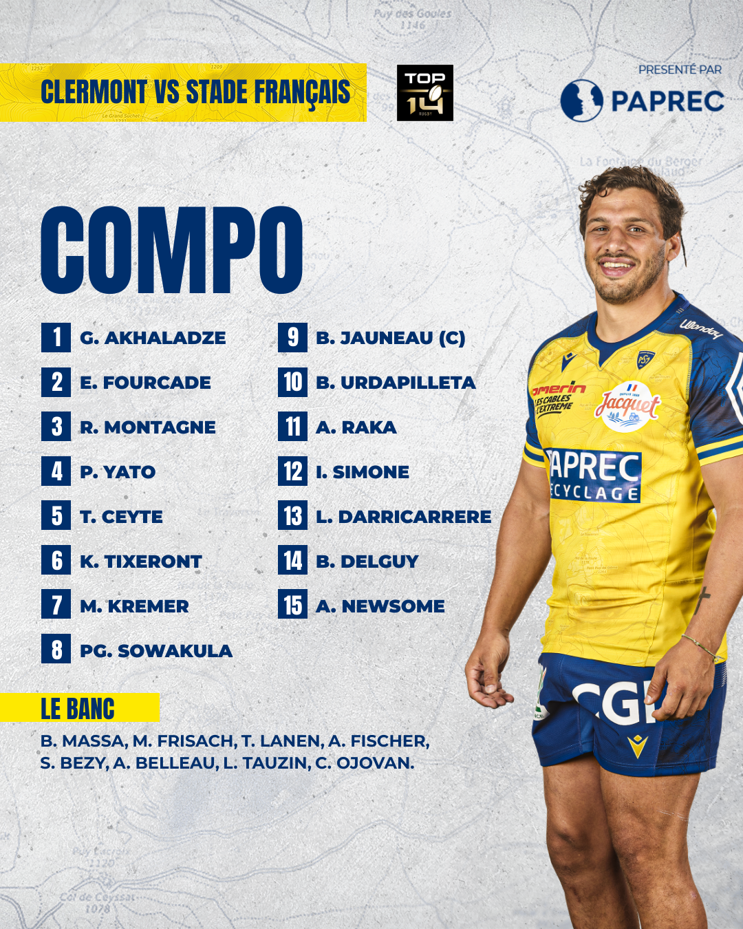 Beaucoup plus de stabilité derrière puisque Baptiste Jauneau reprend le brassard de capitaine pour la dernière de la saison au Michelin. Il sera associé à Benjamin Urdapilleta et une ligne de trois-quarts maintenue dans sa totalité après Castres puisque la paire de centres sera formée par Irae Simone et Léon Darricarrère pendant que le fond du terrain sera occupé par Alivereti Raka, Bautista Delguy et Alex Newsome.