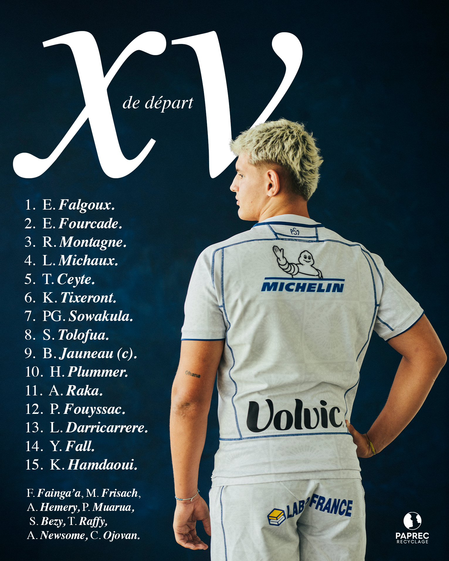 En première ligne, Etienne Falgoux et Etienne Fourcade font partie des rotations et débuteront face aux Racingmen en compagnie de Régis Montagne, maintenu. Sur le banc, le jeune Mathéo Frisach utilisé à 8 reprises la saison dernière signe sa première feuille de match de la saison et sera sur le banc en compagnie de Cristian Ojovan et Folau Fainga’a. En seconde ligne, Léo Michaux (18 ans, 2,03m 125 kg) jouera ses premières minutes en Top 14. Le jeune seconde ligne sera bien encadré par Thomas Ceyte et Anthime Hermery ne sera pas loin. Derrière, Selevasio Tolofua, titulaire à La Rochelle, retrouve le centre de la troisième ligne ce qui permet à Pita-Gus Sowakula de glisser à l’aile où il formera la paire avec Killian Tixeront. Pio Muarua sera sur le banc et pourra couvrir tous les postes du 4 au 8.