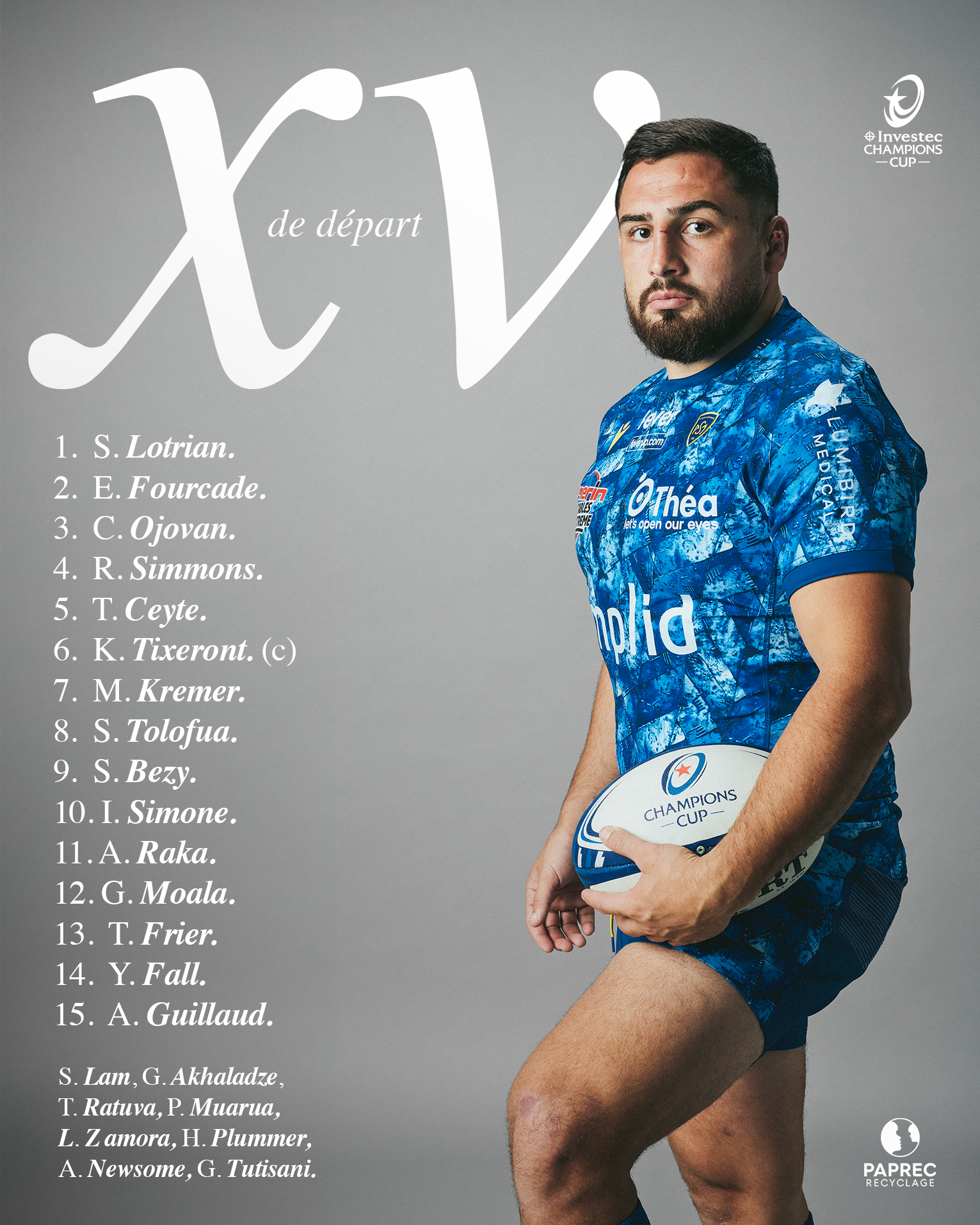 9 changements interviennent pour recevoir les Anglais de Sale, une semaine après le déplacement aux Saracens. Ls principales rotations seront visibles dans les lignes arrières menées par une nouvelle charnière (Sébastien Bezy – Irae Simone) et où seul Axel Guillaud, à son avantage sur la pelouse du StoneX Stadium reste en place. Autour de lui Alivereti Raka (ischio) et Yérim Fall (pied) font leur retour à la compétition pendant que George Moala (relancé la semaine dernière) sera associé au jeune Timéo Frier dans le centre du terrain.